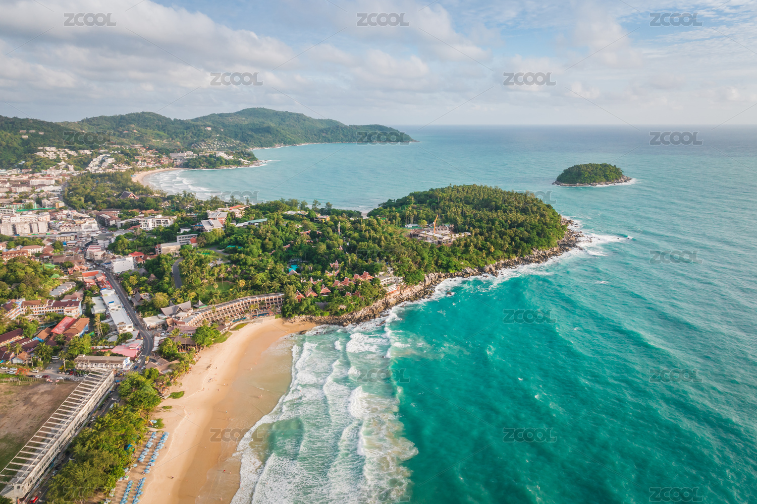 泰国普吉岛卡塔海滩海岸线自然风光航拍
