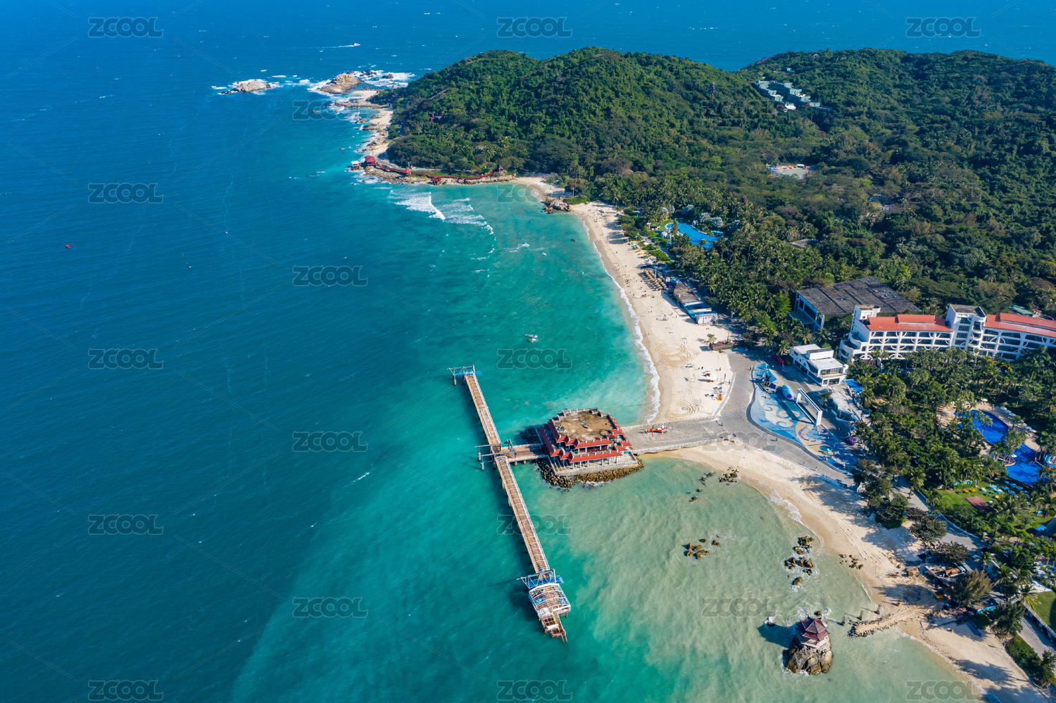 航拍海南三亚蜈支洲岛海景热带小岛登岛码头
