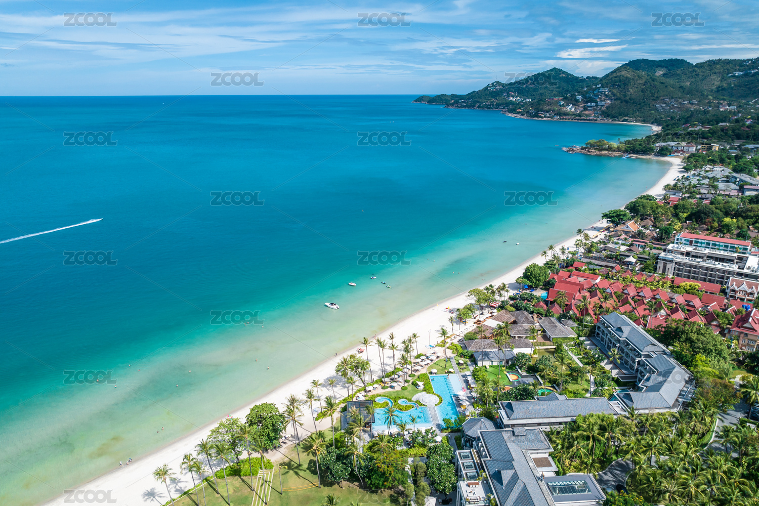 泰国苏梅岛波普海滩航拍热带岛屿海滨度假村