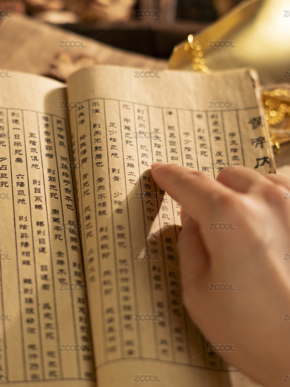 打开的泛黄古书黄帝内经