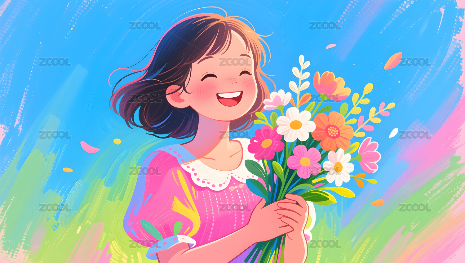扁平,肌理,插画,绘画,清新,一个人,女孩,女生,人,治愈