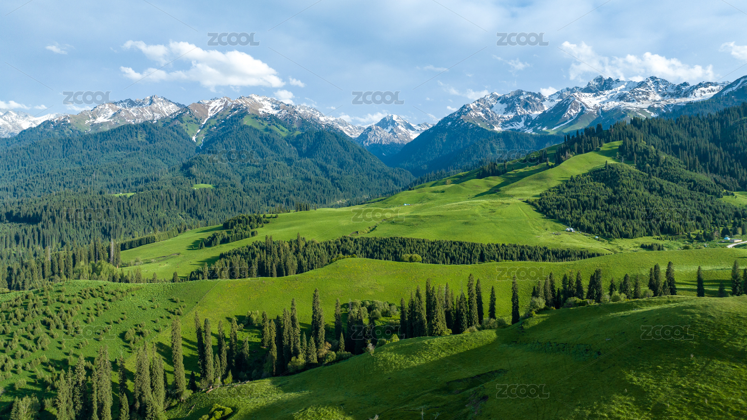 中国新疆伊犁库尔德宁草原高山草甸森林风光
