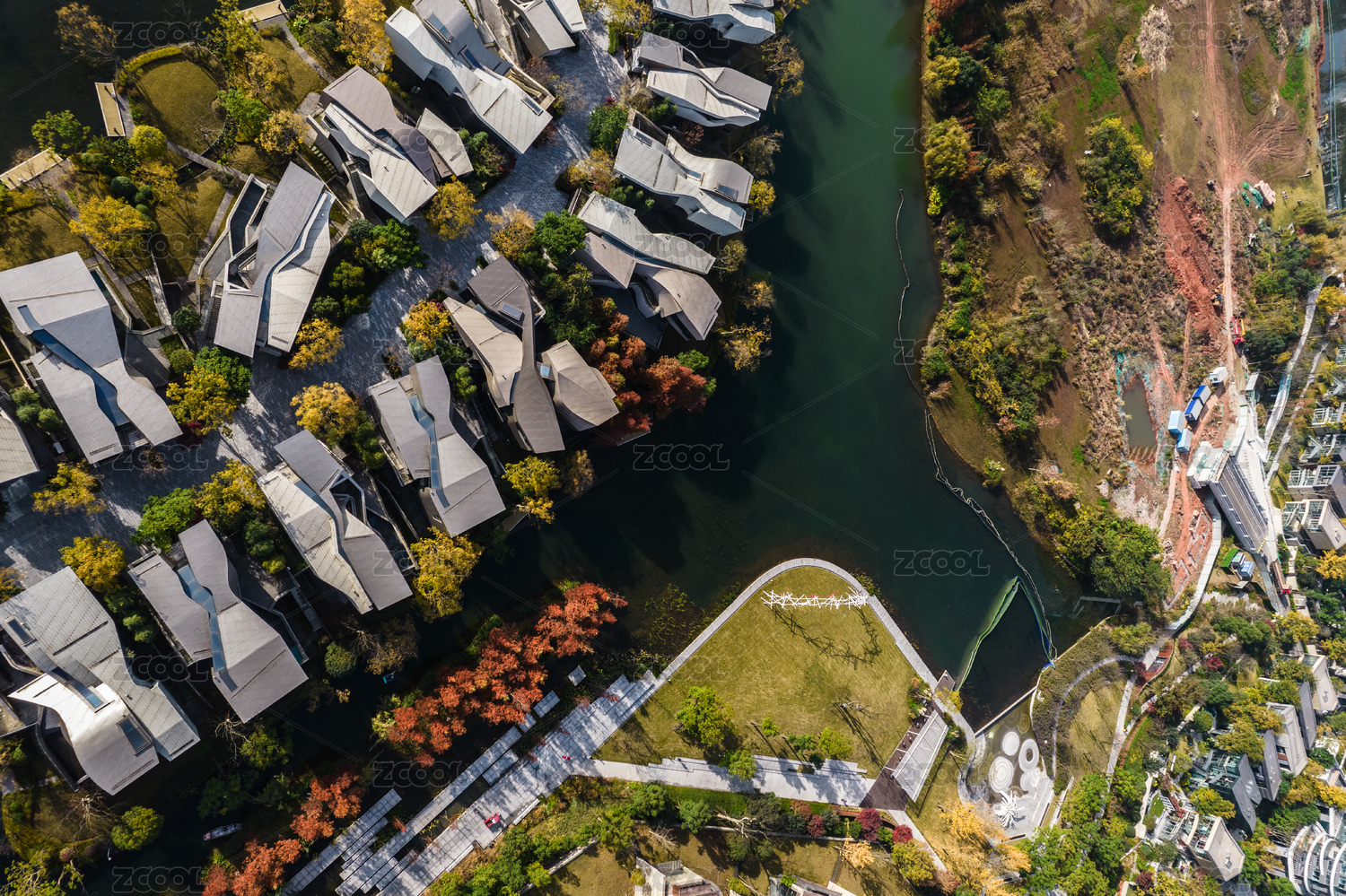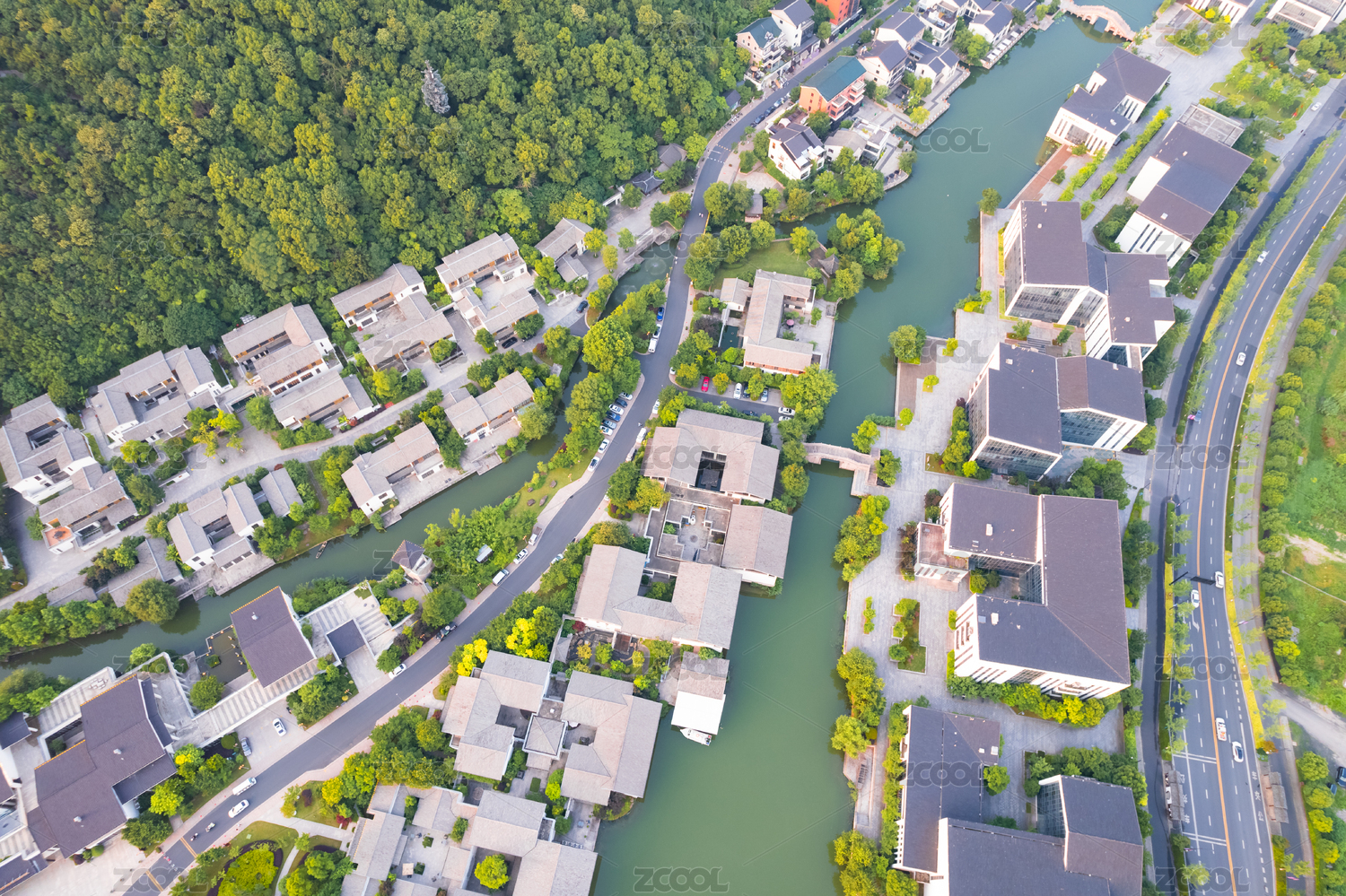 浙江杭州湘湖金融镇风情特色小镇建筑风光
