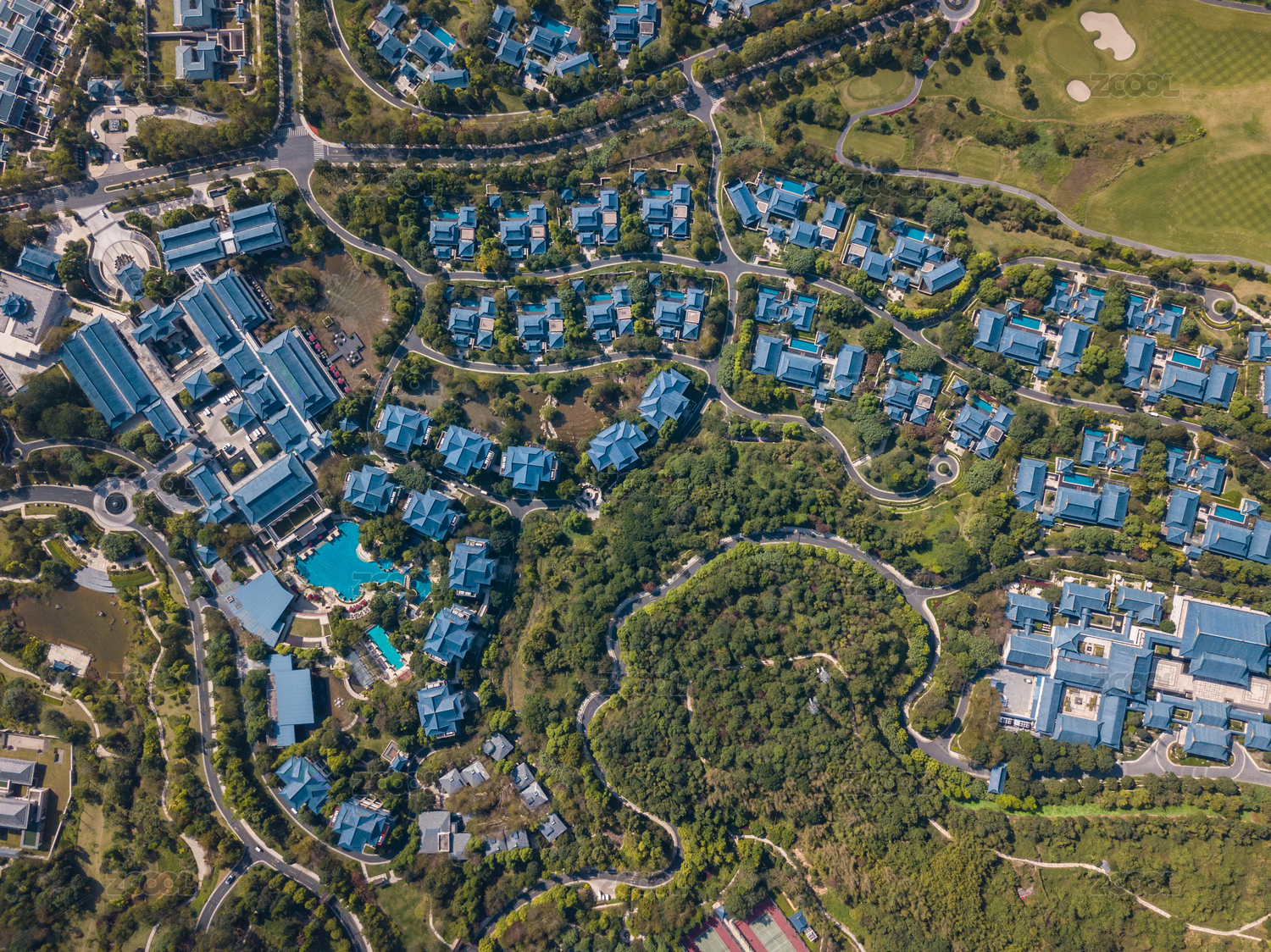 航拍海南三亚亚龙湾国家旅游度假区别墅酒店