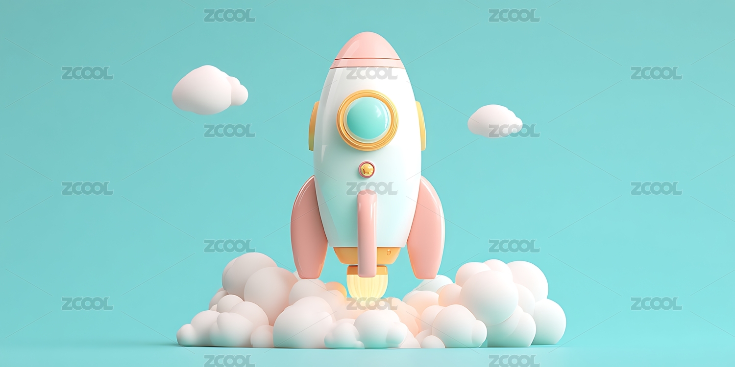 3D,插画,技术,科技,未来,科学,火箭,卡通,发射,太空