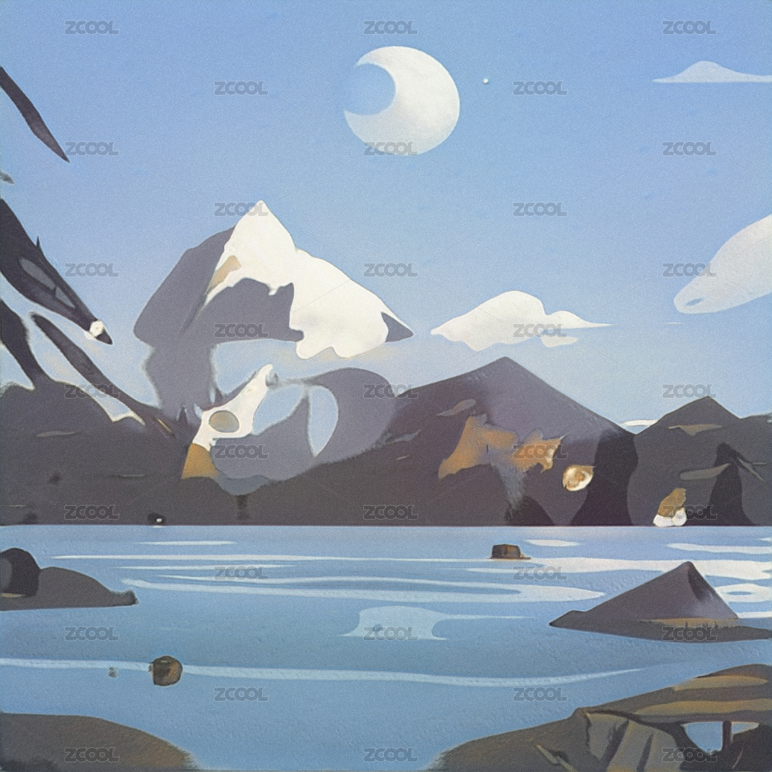 插画,风光,自然,写实,天空,山脉,河流,河,大海,海洋