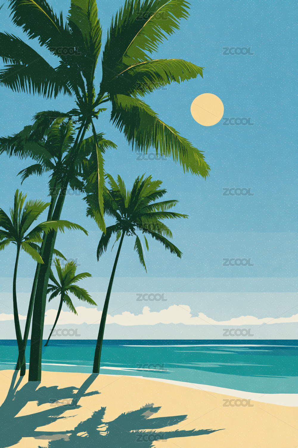 夏季海滩椰子树插画图