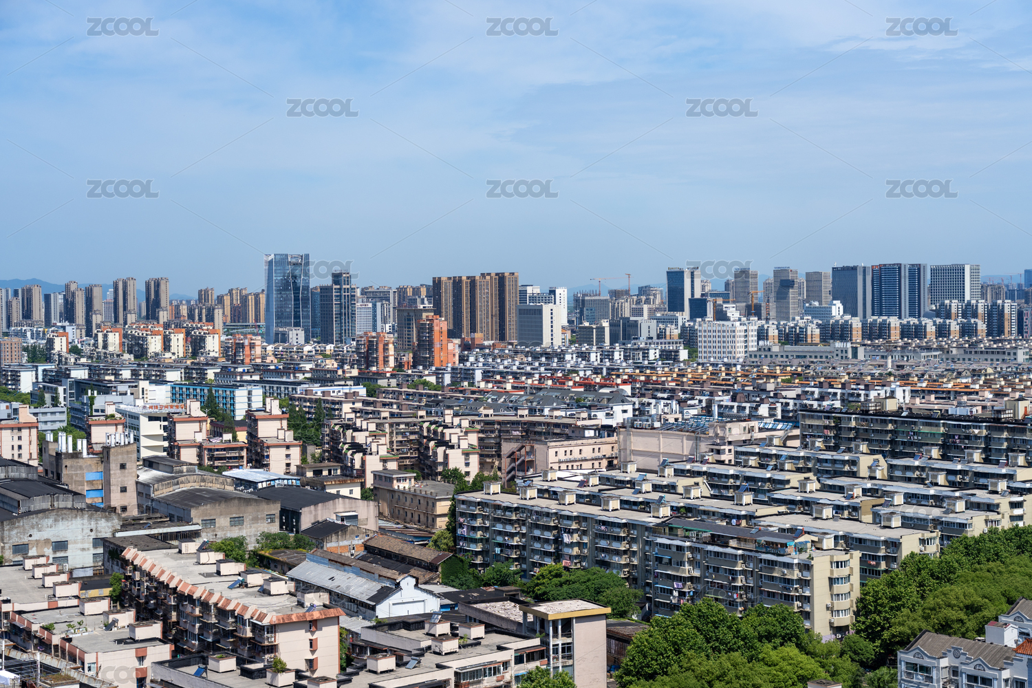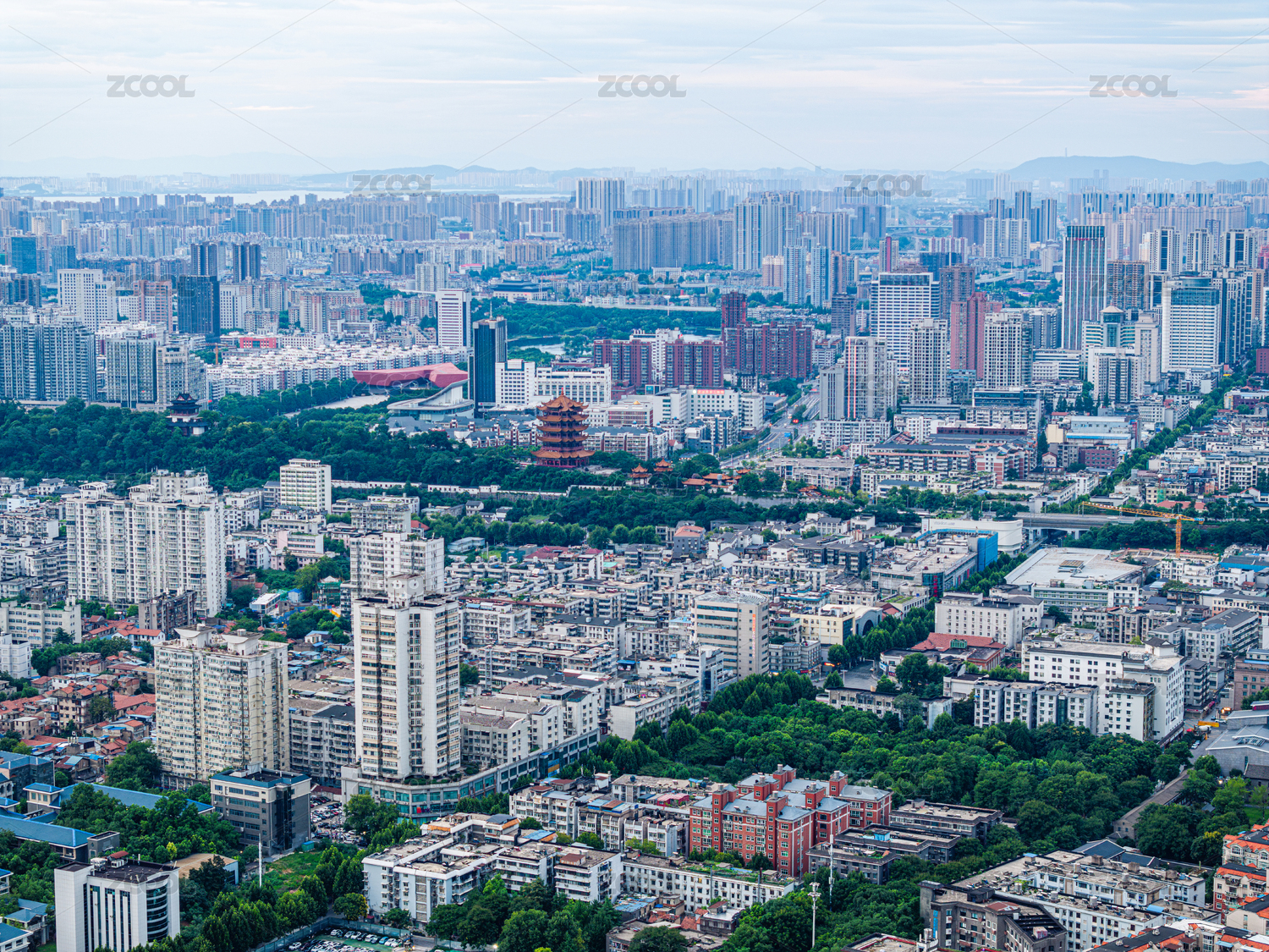暴雨过后云海笼罩下的无锡市城市建筑风光