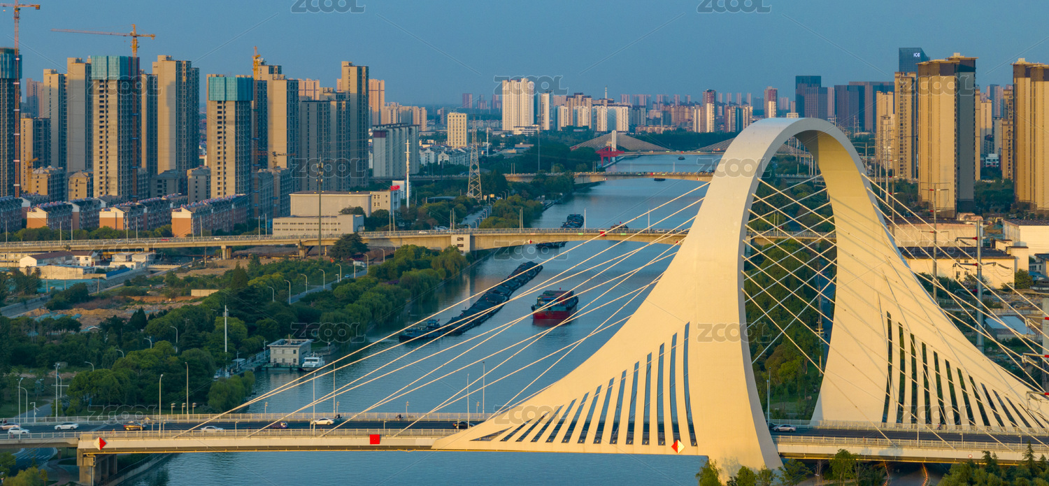 夏季郑州市跨铁路彩虹桥航拍风光