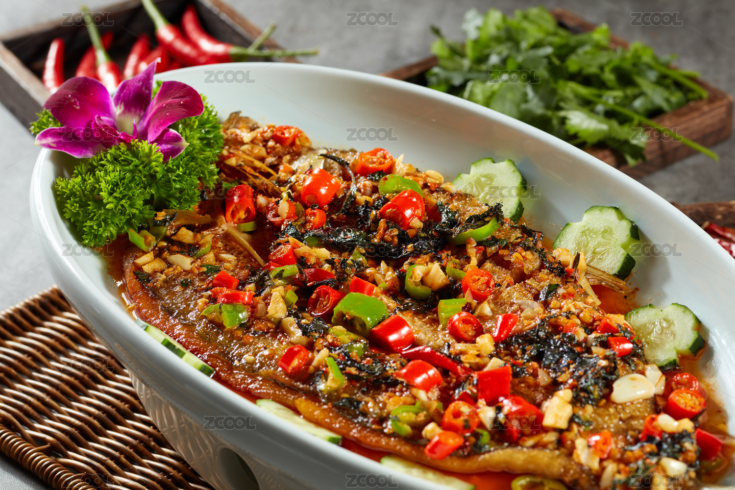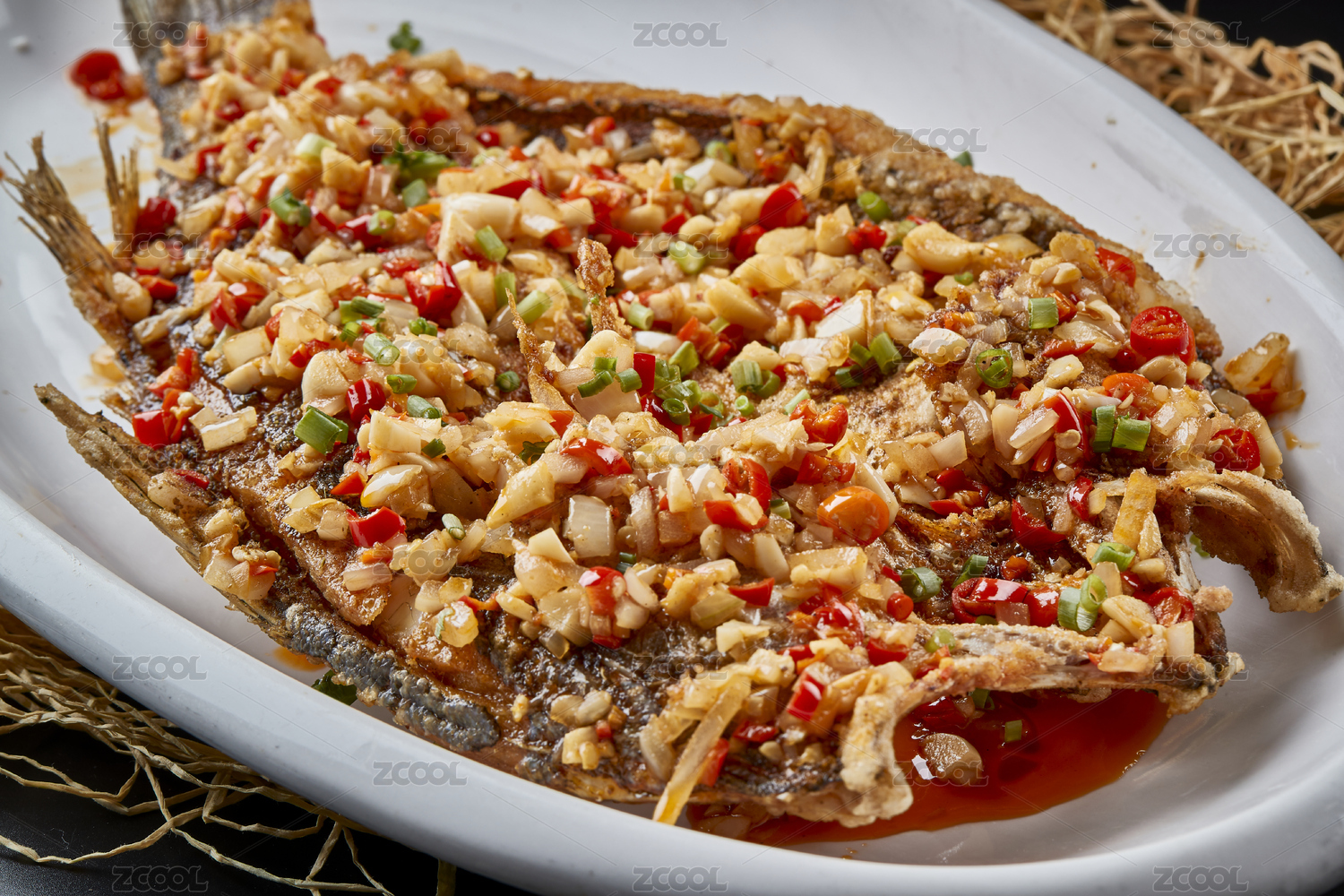 秘制蒜子剁椒干炸海鲈鱼