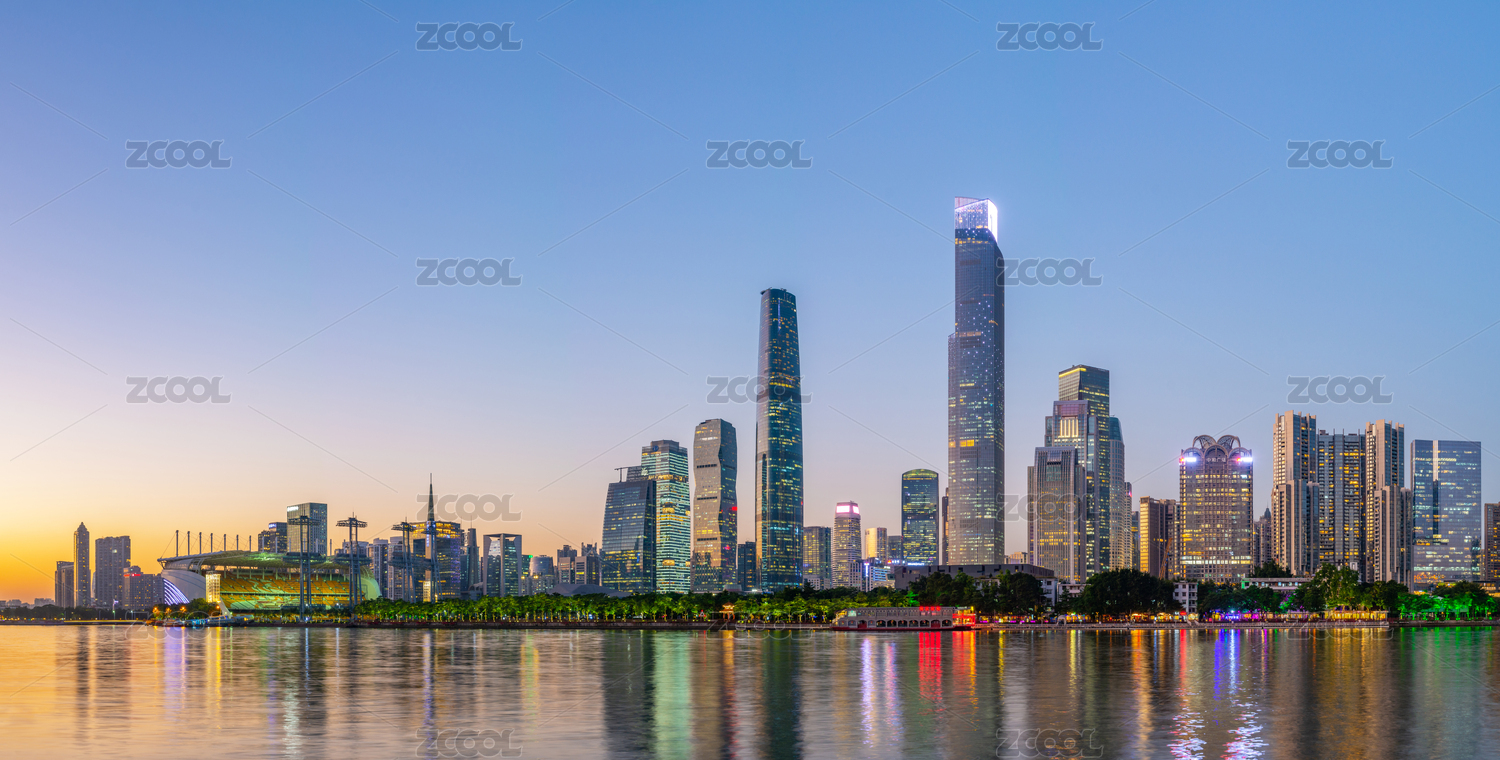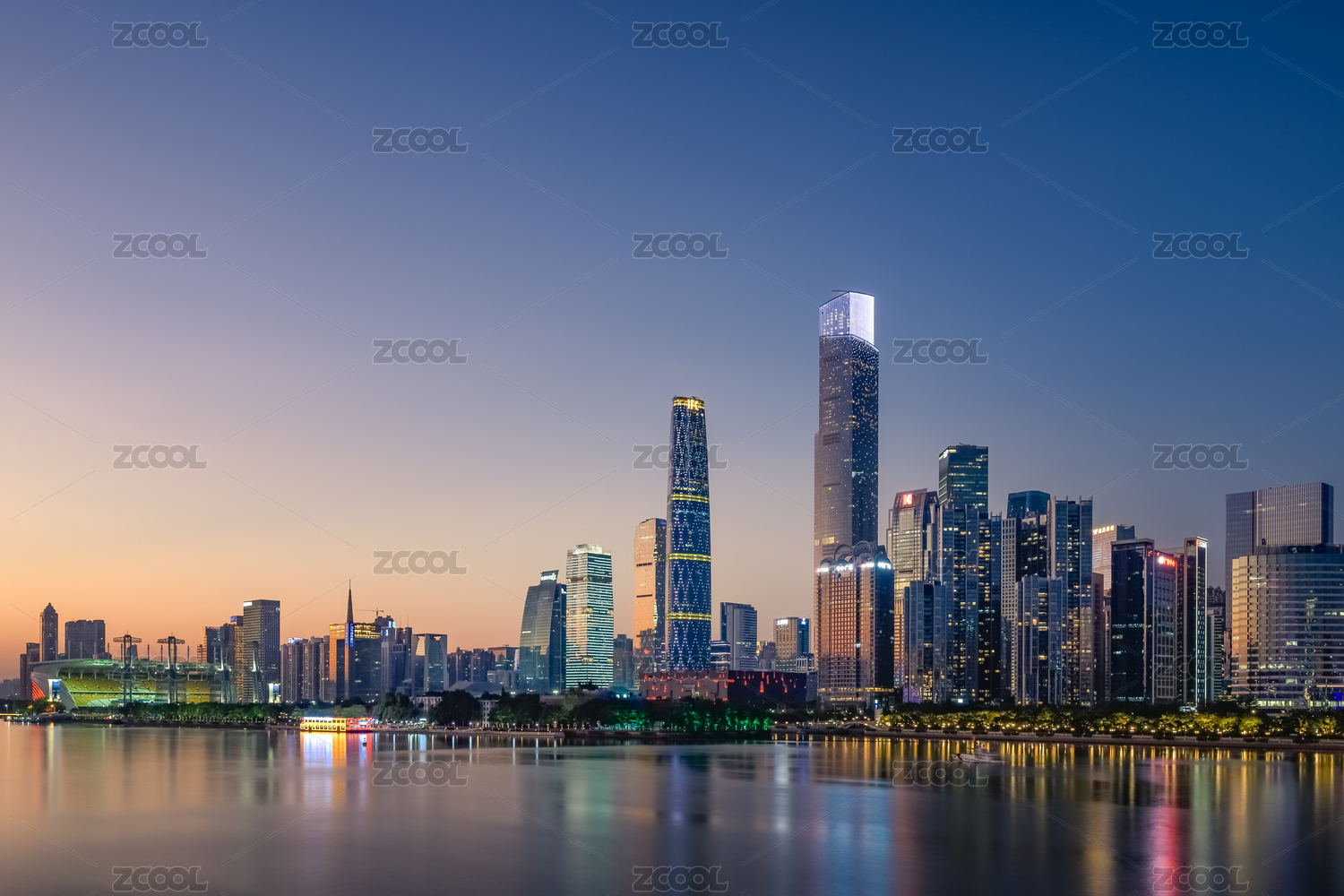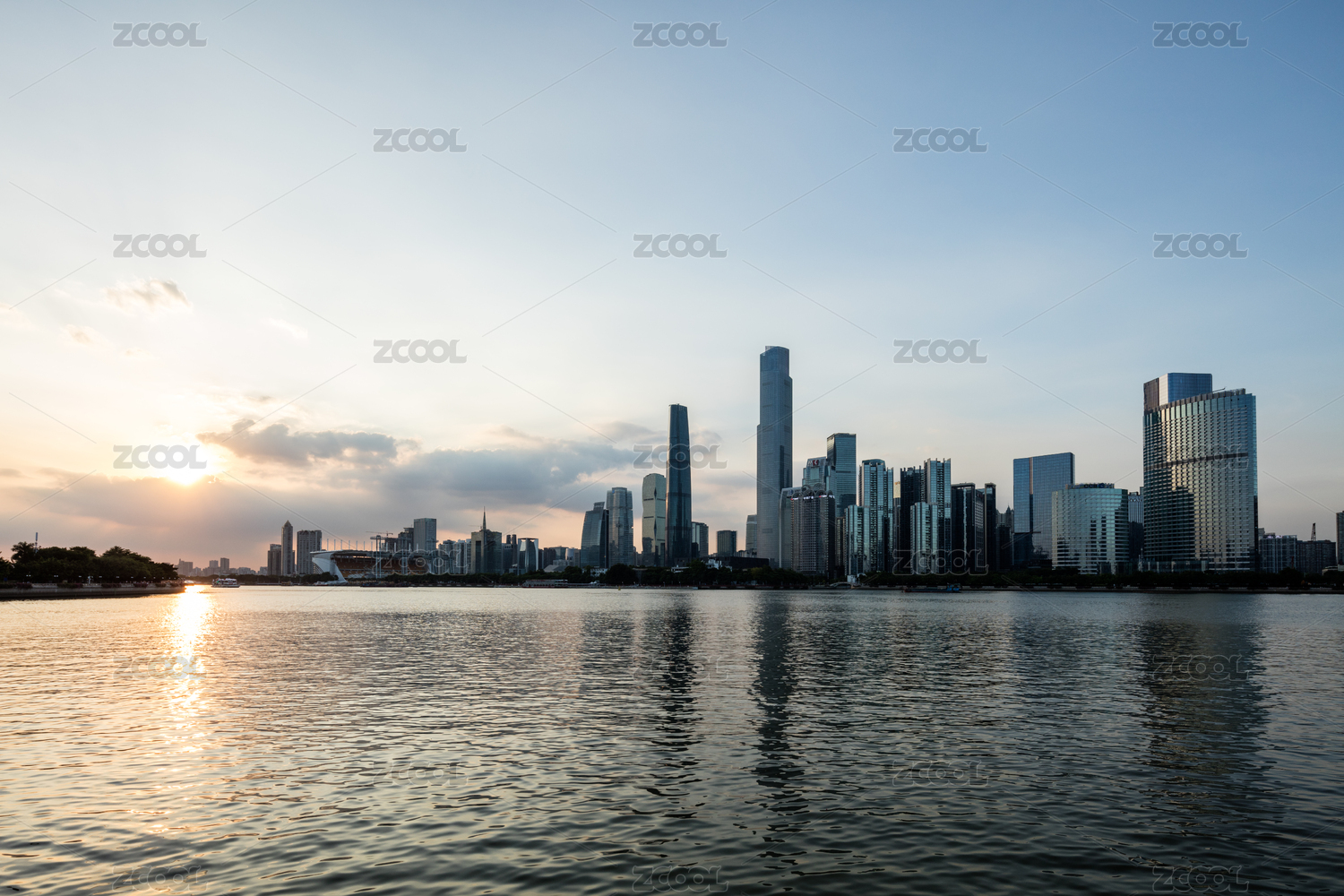 广州,城市,建筑,摩天大楼,夕阳,金色,CBD,天际线,金融,商务