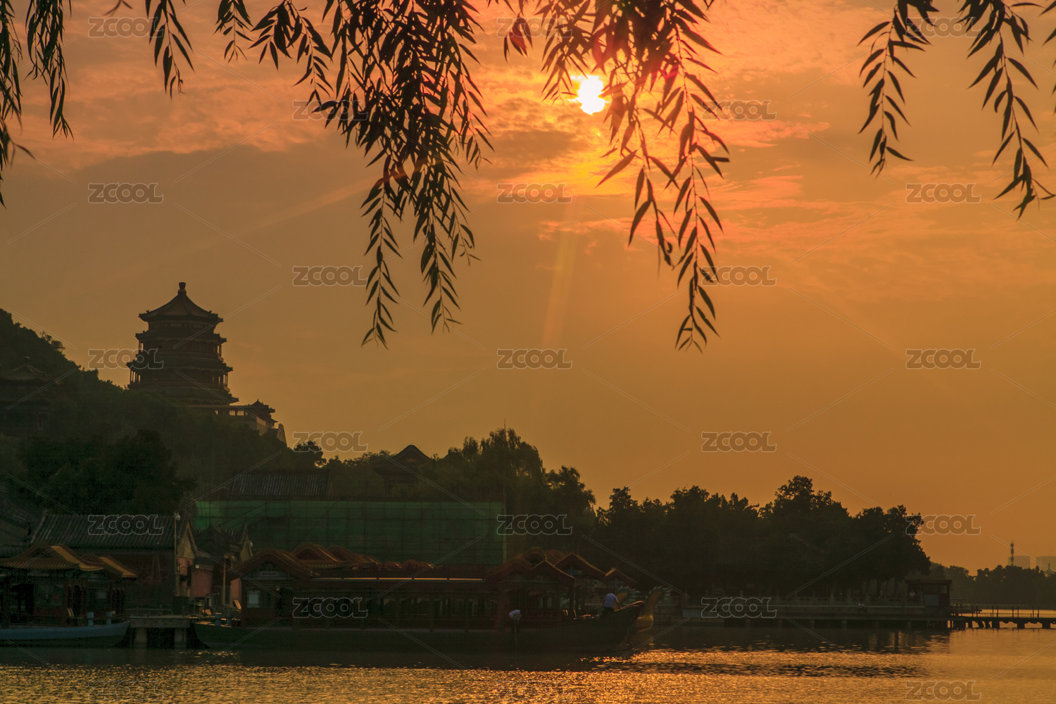 夕阳下的颐和园柳桥