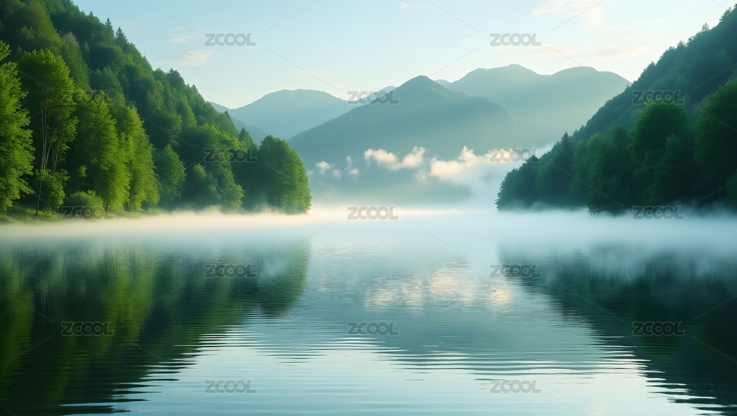 无人,自然,树,湖,云,森林,雾,宁静,反射