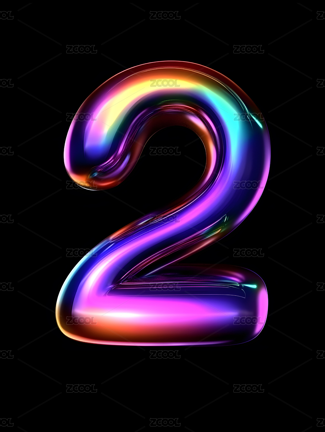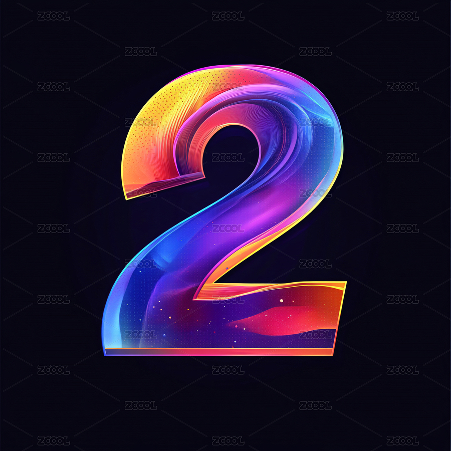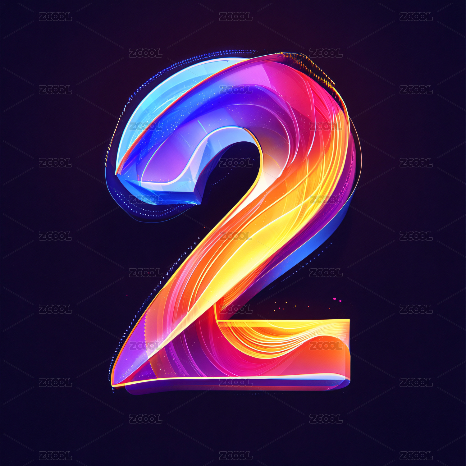 数字2,2,二,倒计时,立体字,插图,背景,光绘,彩虹,曲线