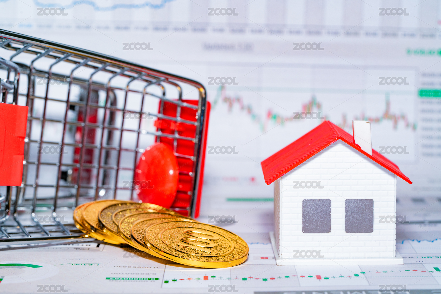购物车房屋模型小人国沙盘小人人偶模型图表报表房地产概念