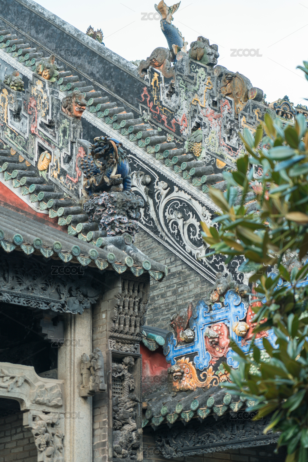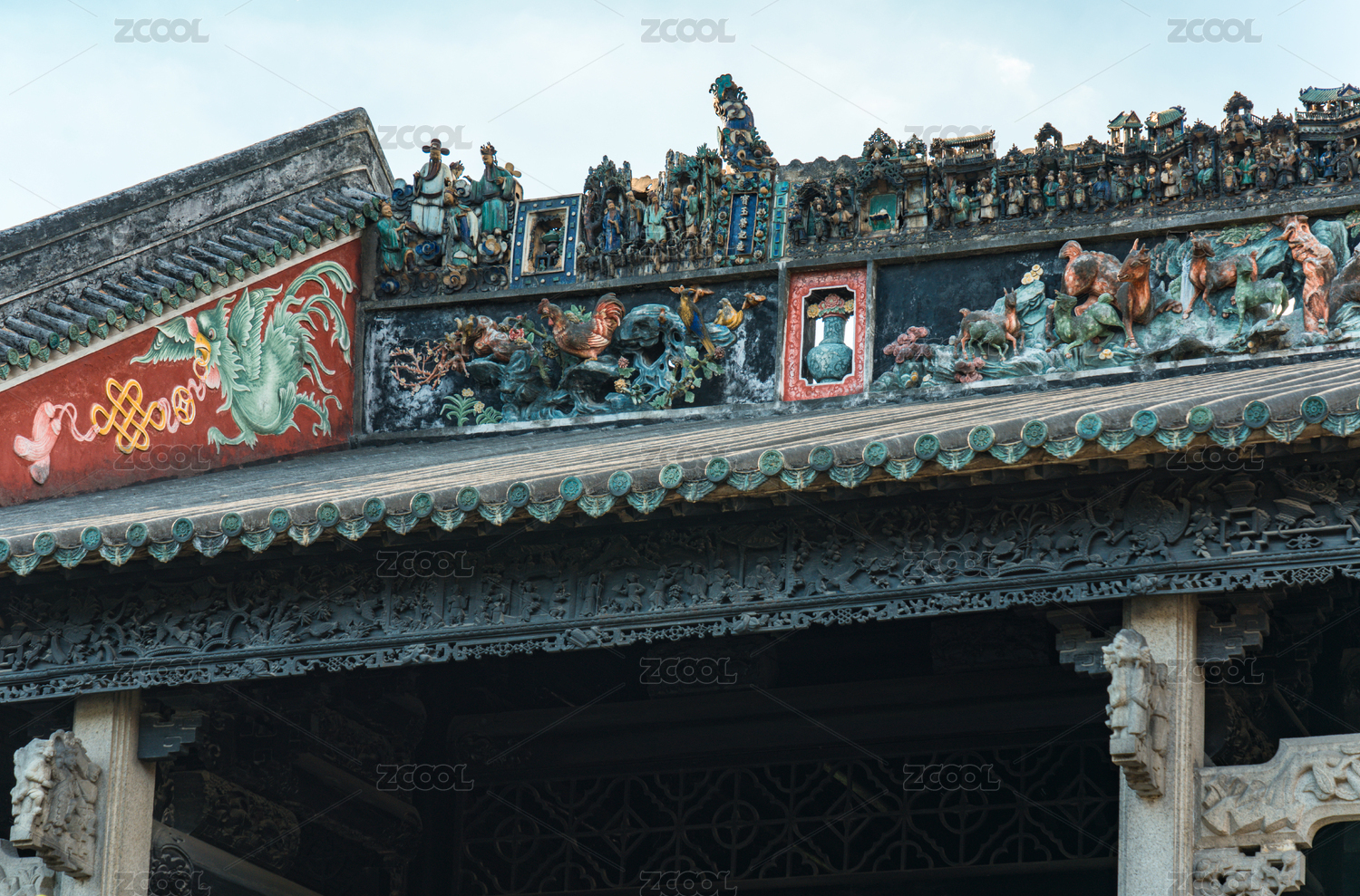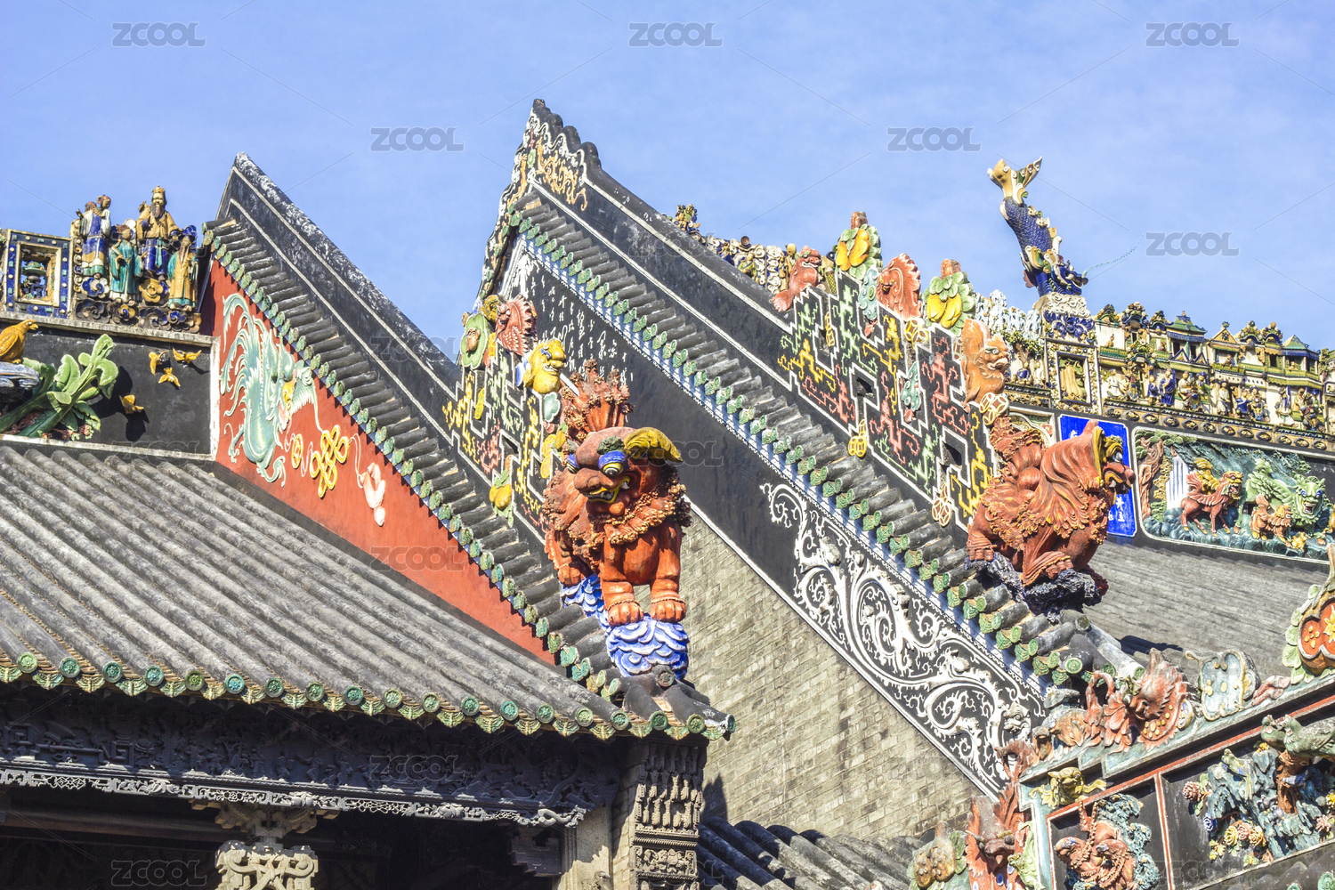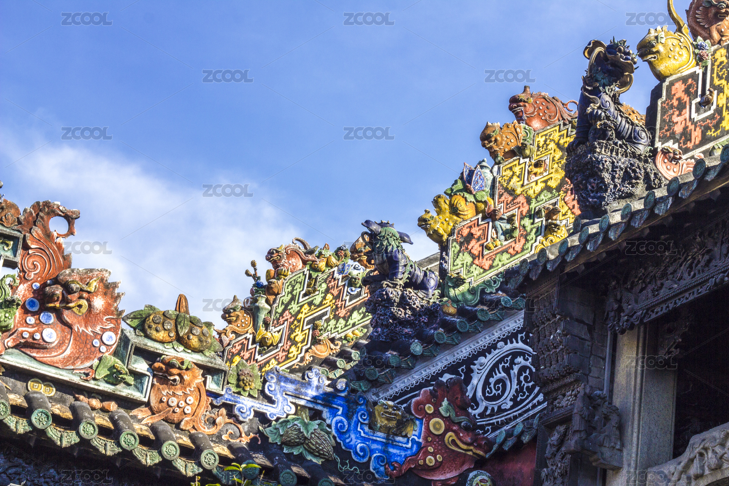 中国广州陈家祠岭南建筑屋顶灰塑陶塑
