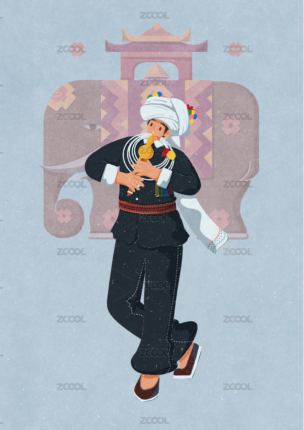 阿昌族吹葫芦丝的男性