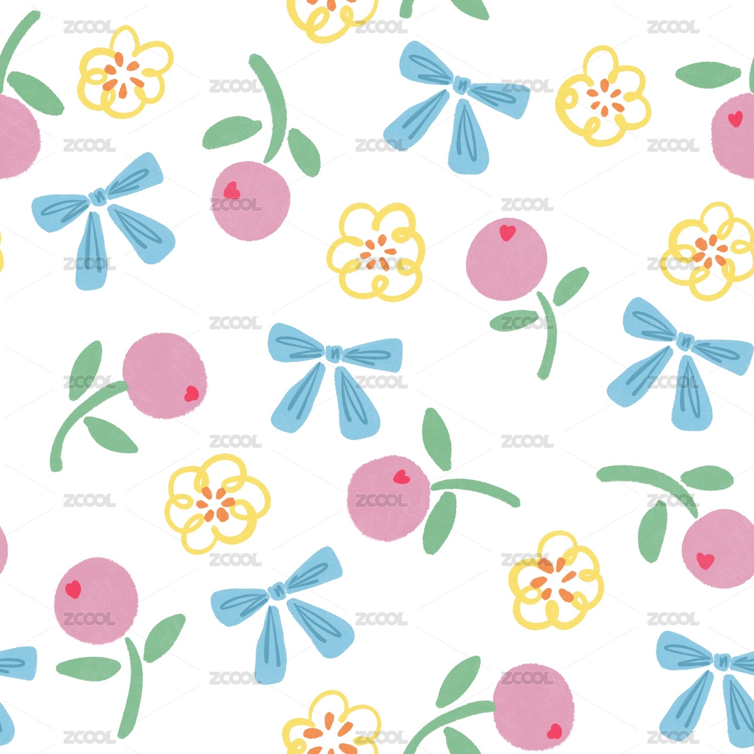 可爱卡通手绘花朵花卉水果植物家纺童装印花