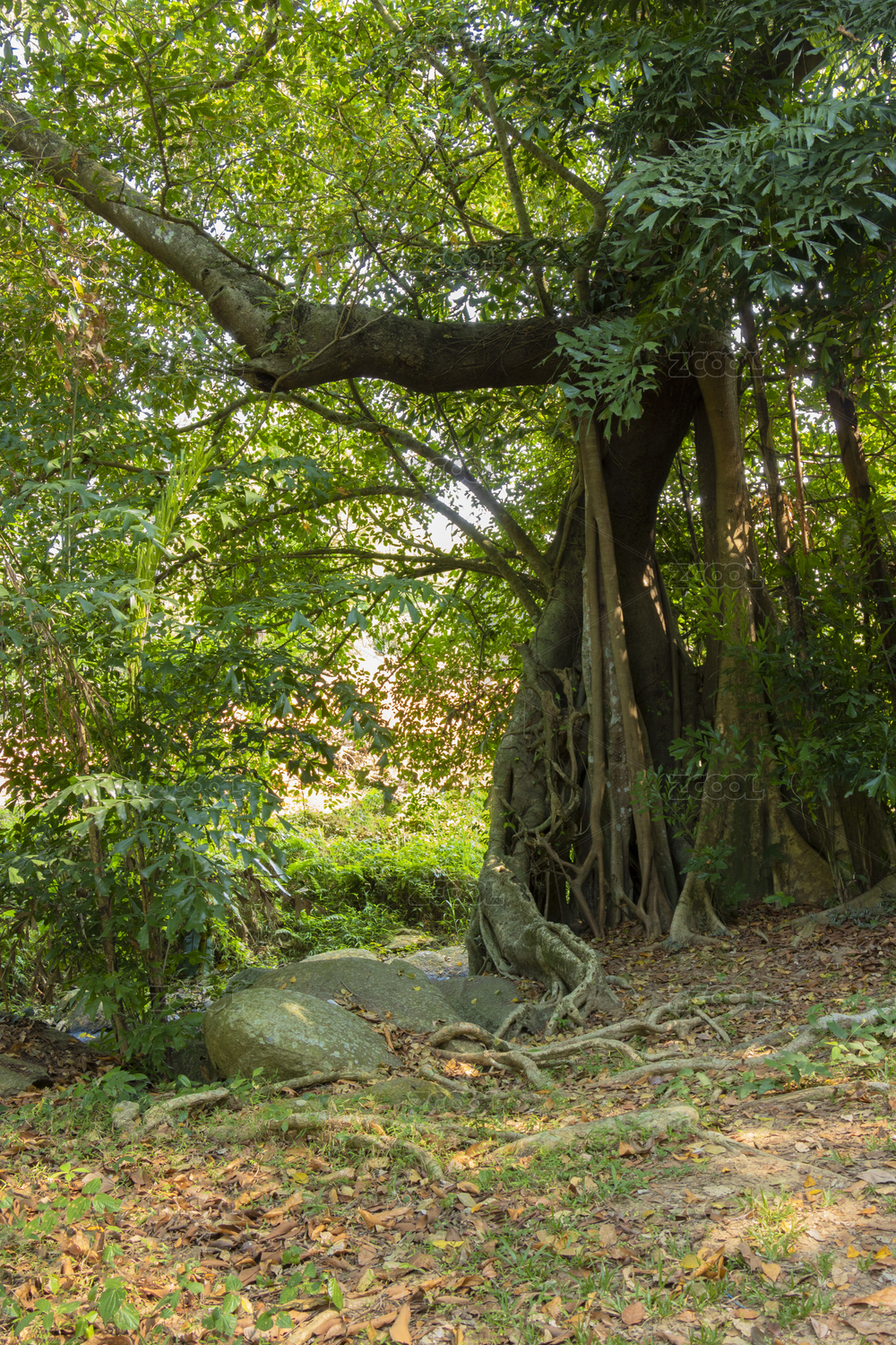 中国海南儋州热带植物园小溪边的老树