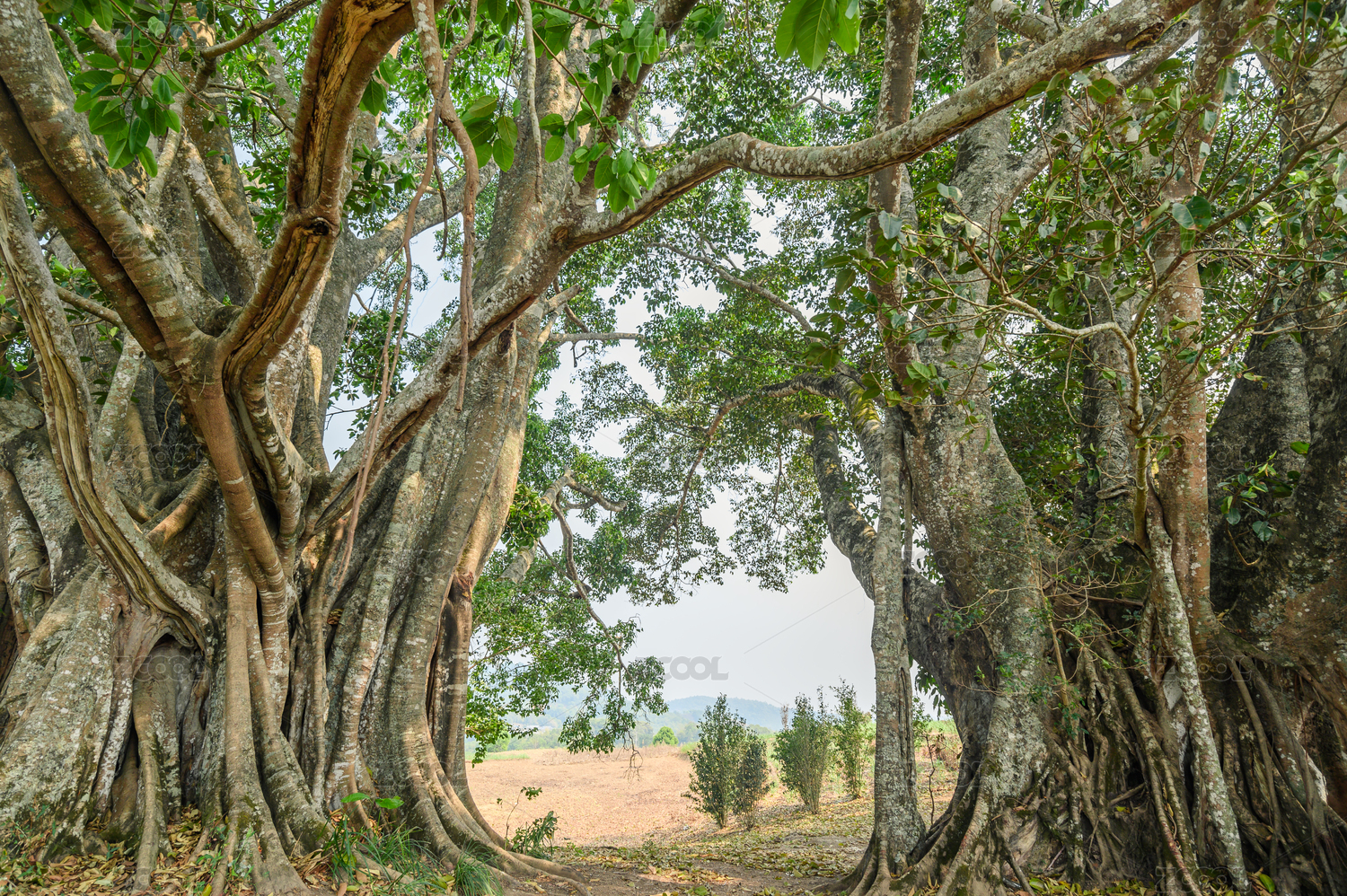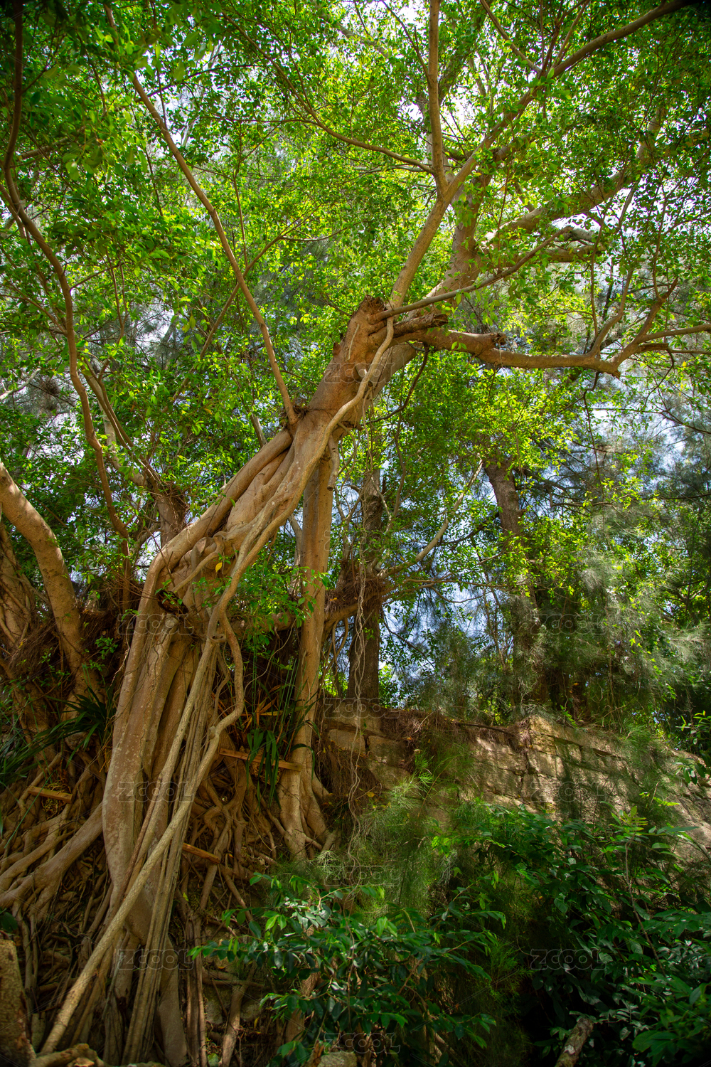 低视角拍摄榕树枝干