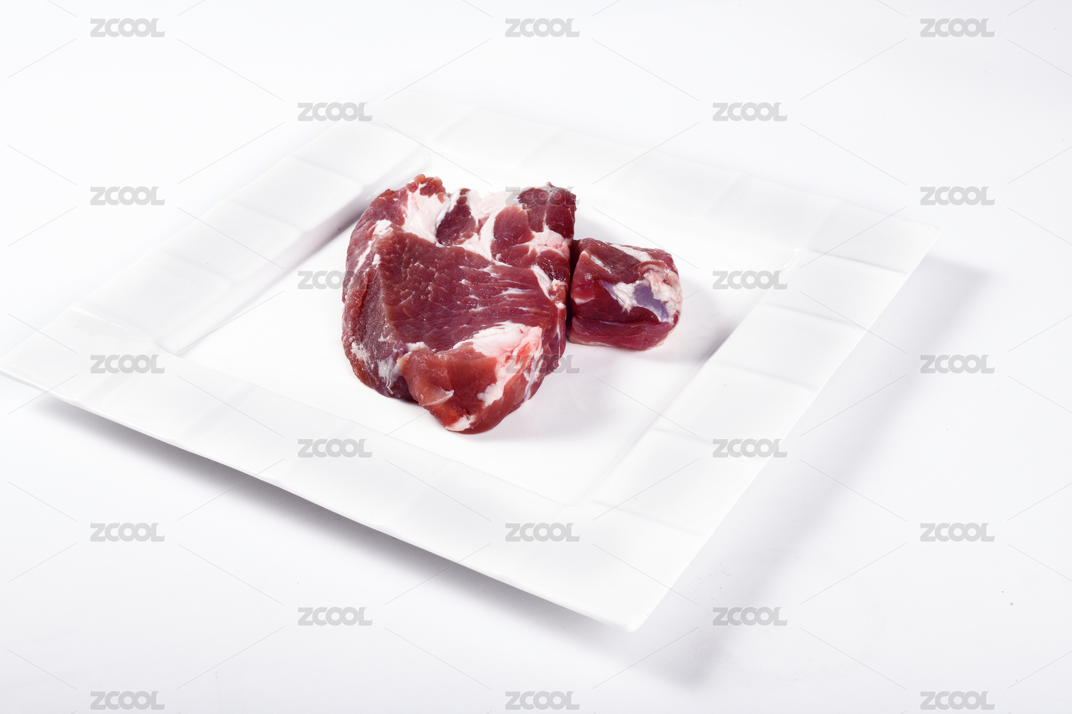 一块猪肉放在碟子上