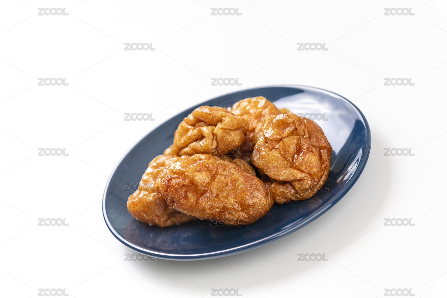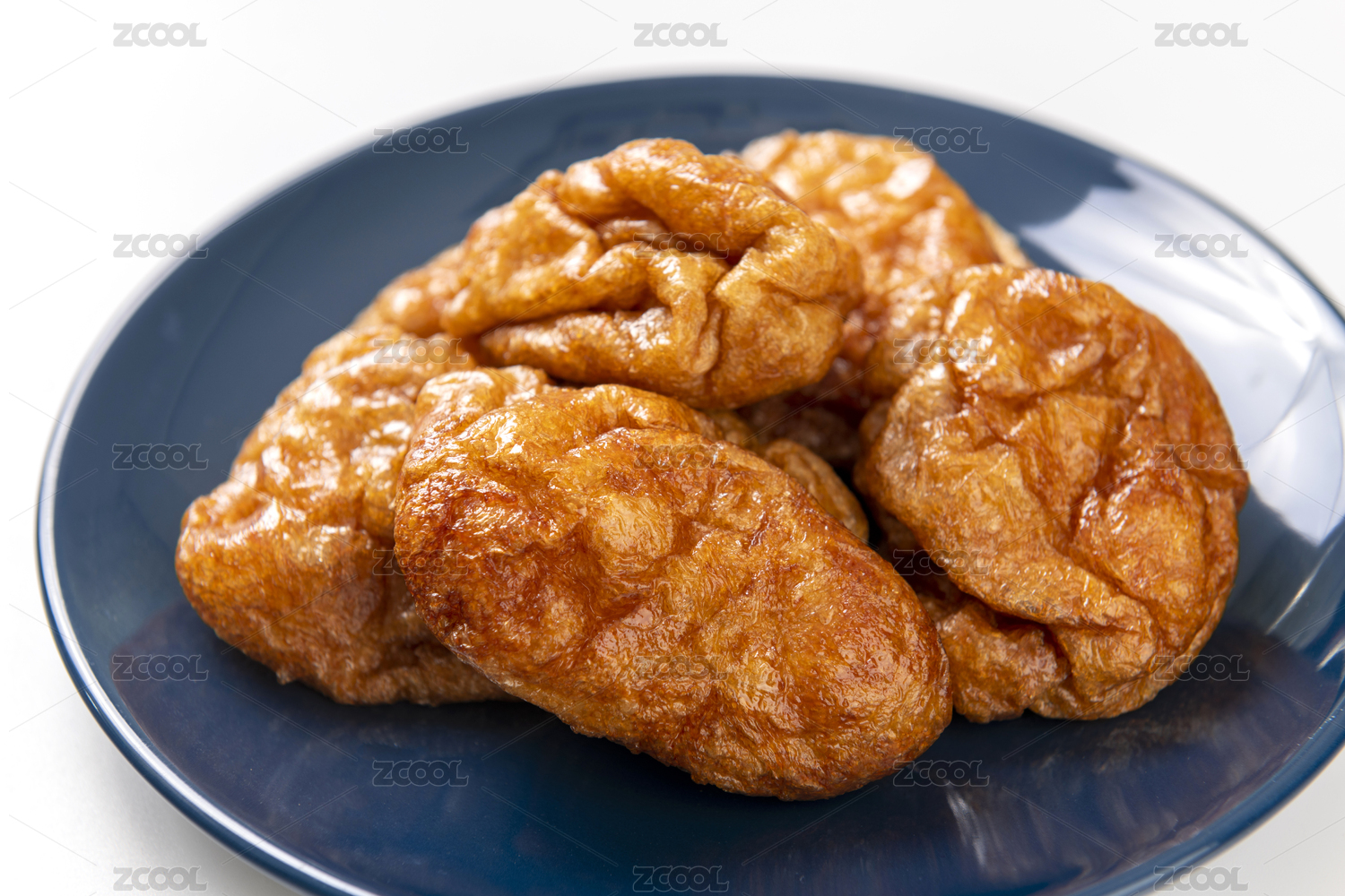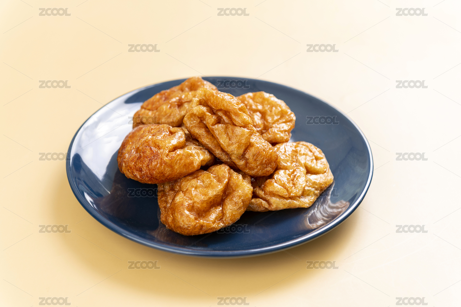 炸面筋,面筋,水面筋,油面筋,烤麸,植物蛋白,一盘,一碟,金色叉子,面粉