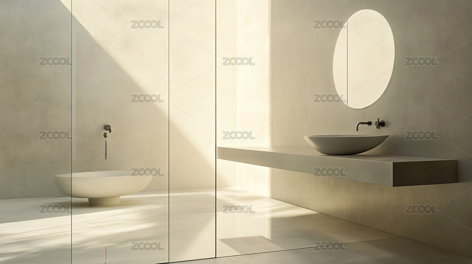 浴室,卫浴,卫生间,洗漱台,镜子,圆形镜,简约,现代,极简,时尚