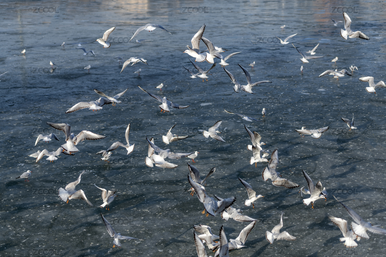 中国山东青岛冬季海上的海鸥