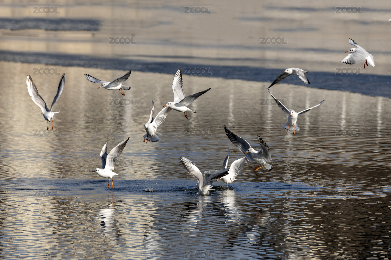 海鸥追逐觅食