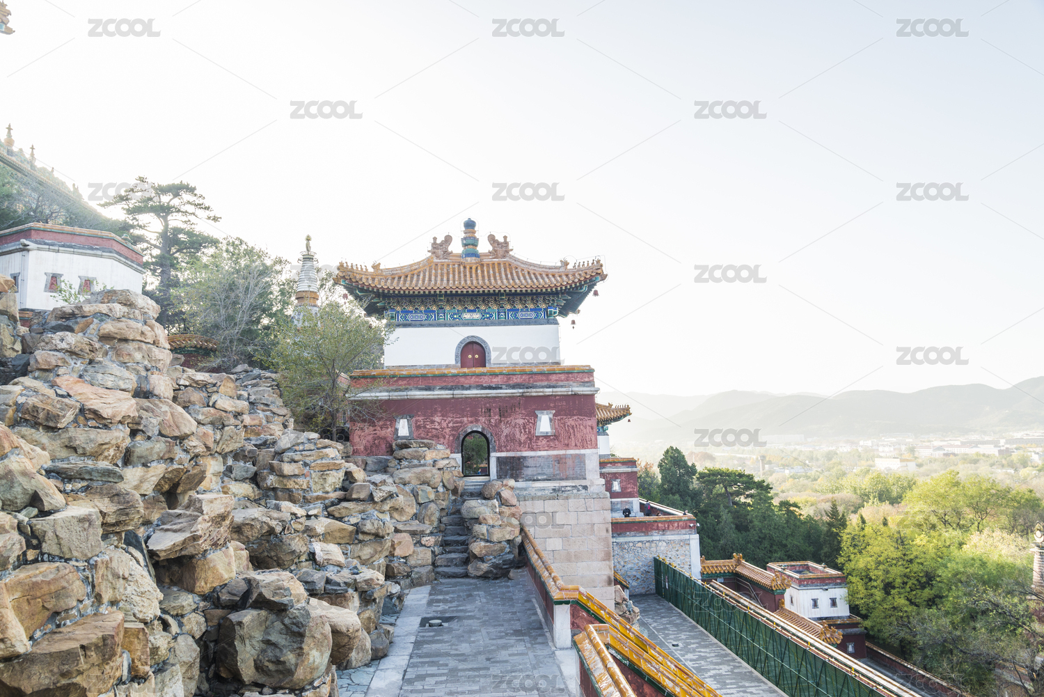 秋天的北京颐和园公园的亭台楼阁古建筑
