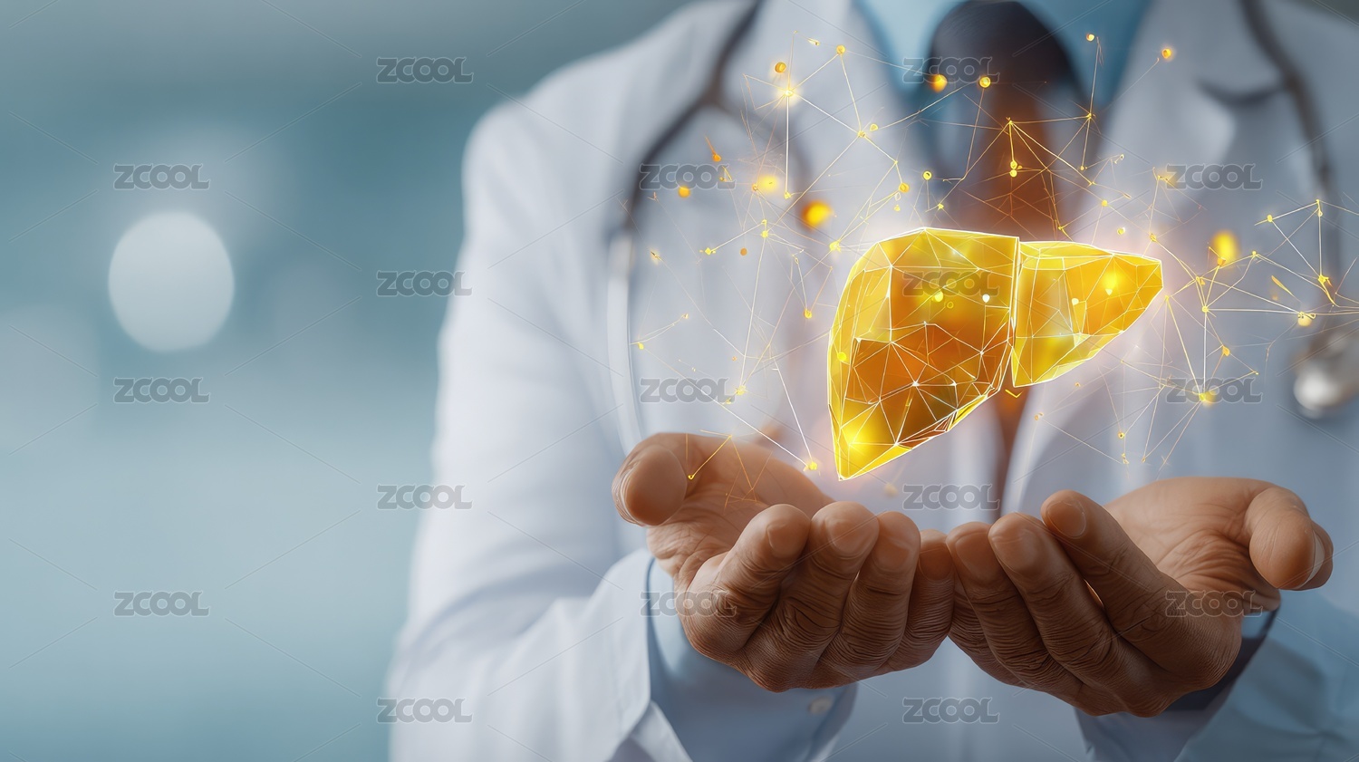 医生用手托起肝脏科技映像