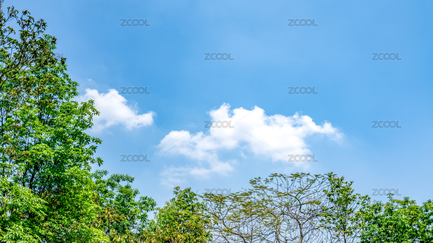 蓝天白云下的繁茂绿树风景