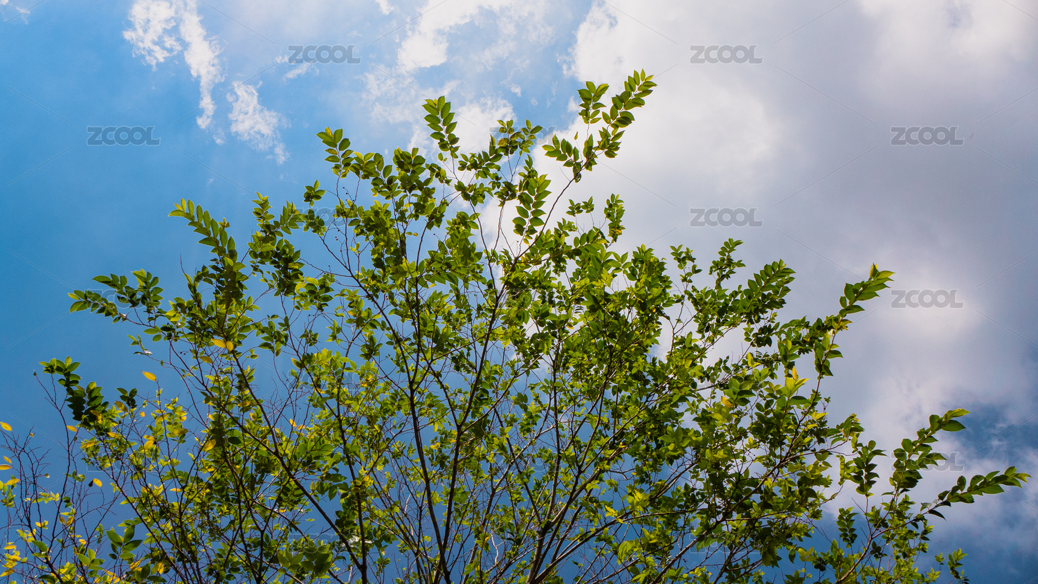 蓝天白云绿树叶