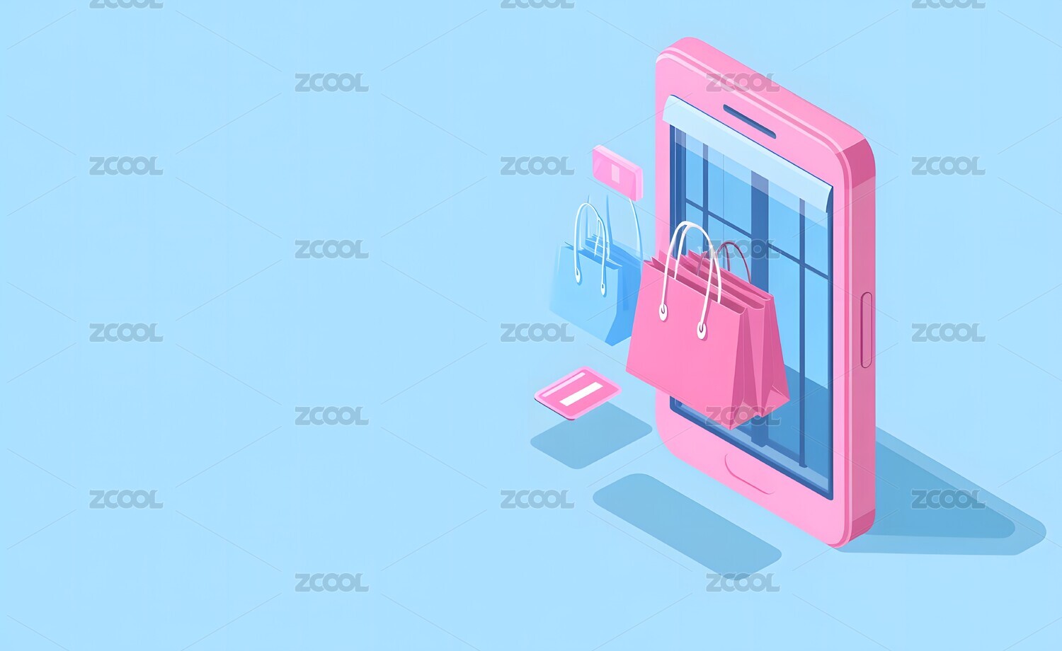 3D电商,科技,电商,海报,壁纸,背景,插画,购物,购物车,手机空白页