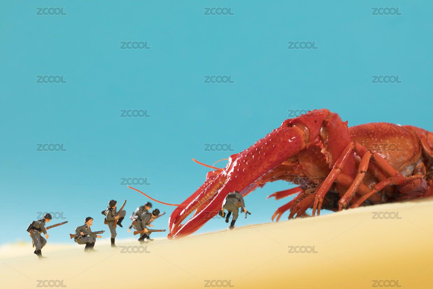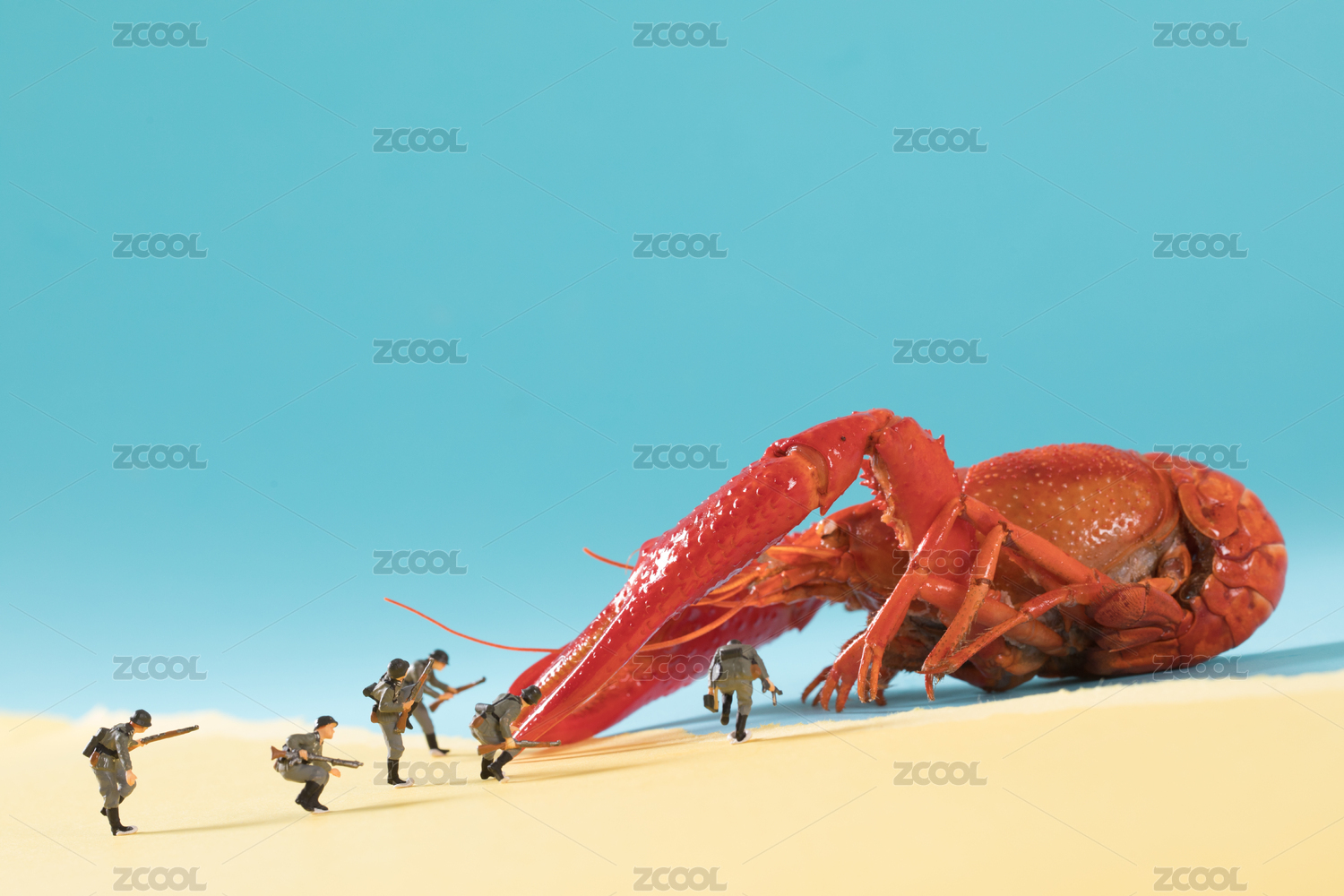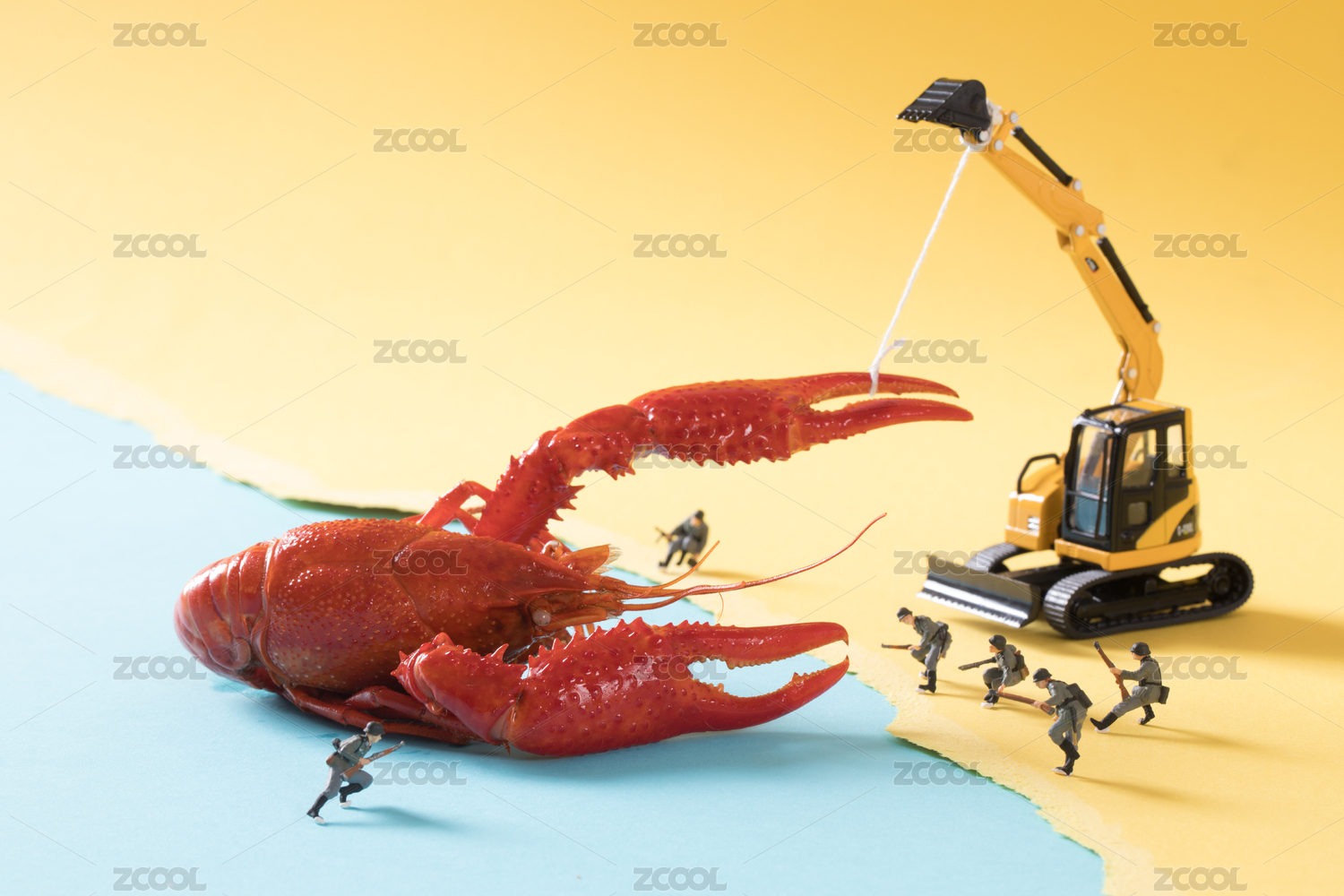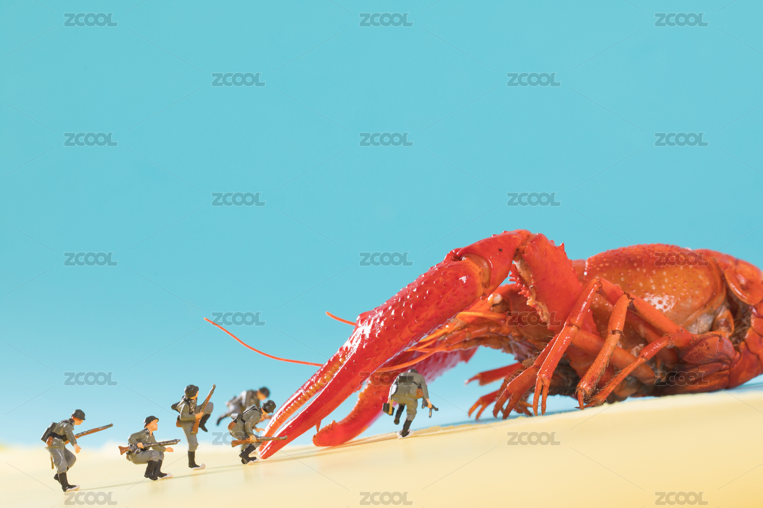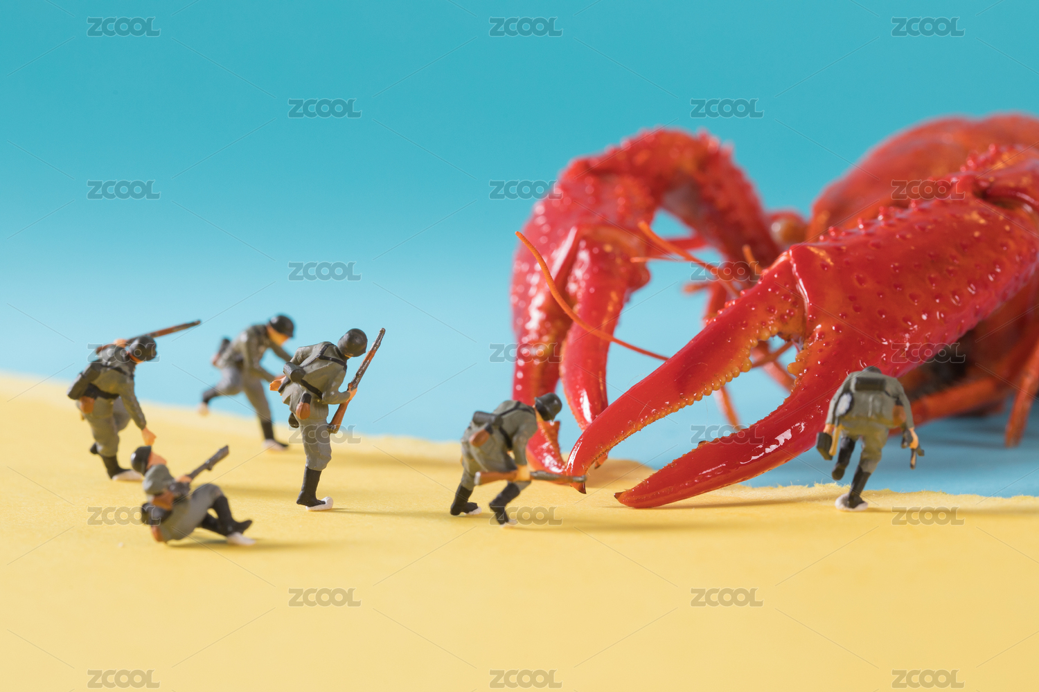 迷你小人,小龙虾,微拍小龙虾,缩微摄影小龙虾,crawfish,黄底,战斗,迷你小人和小龙虾,Crawfish,Crayfish