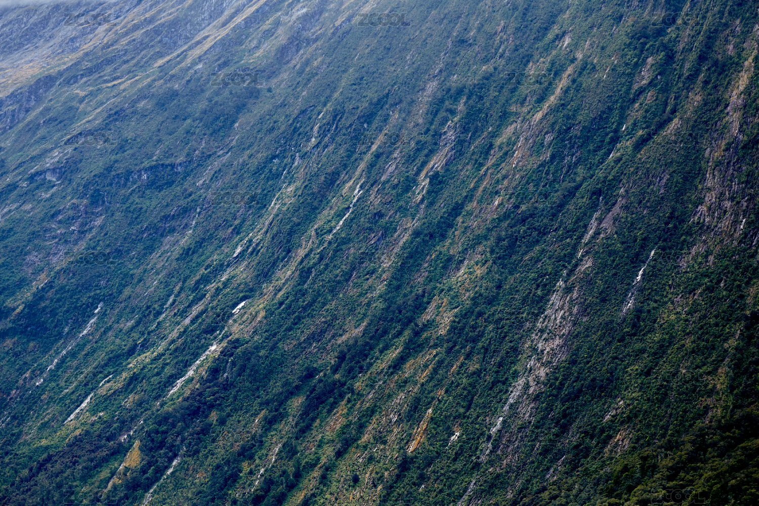 绿植覆盖的山间流下瀑布
