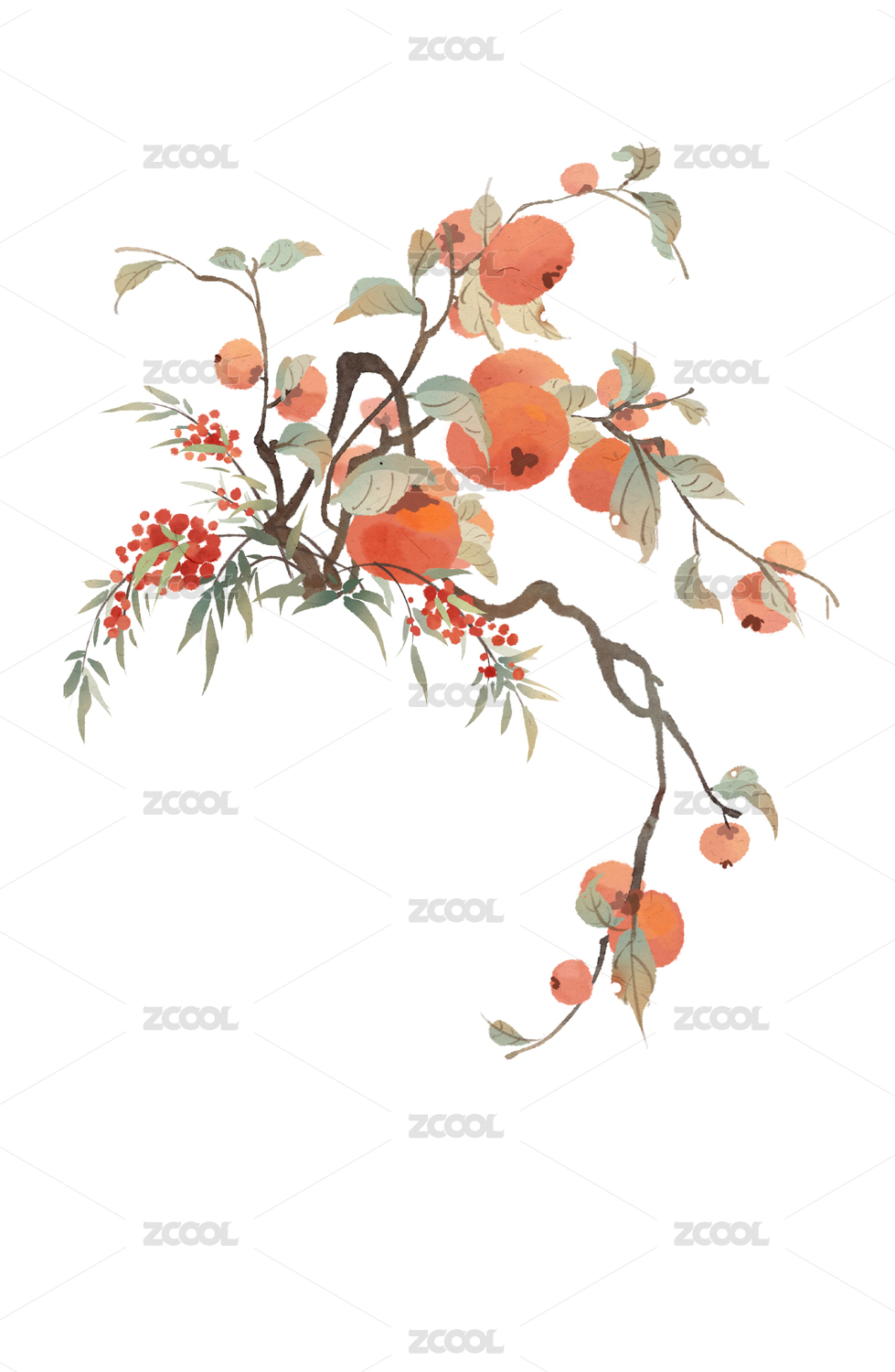 枇杷,中式,水墨,国潮,国风,创意,树枝,叶子,绿色,美食