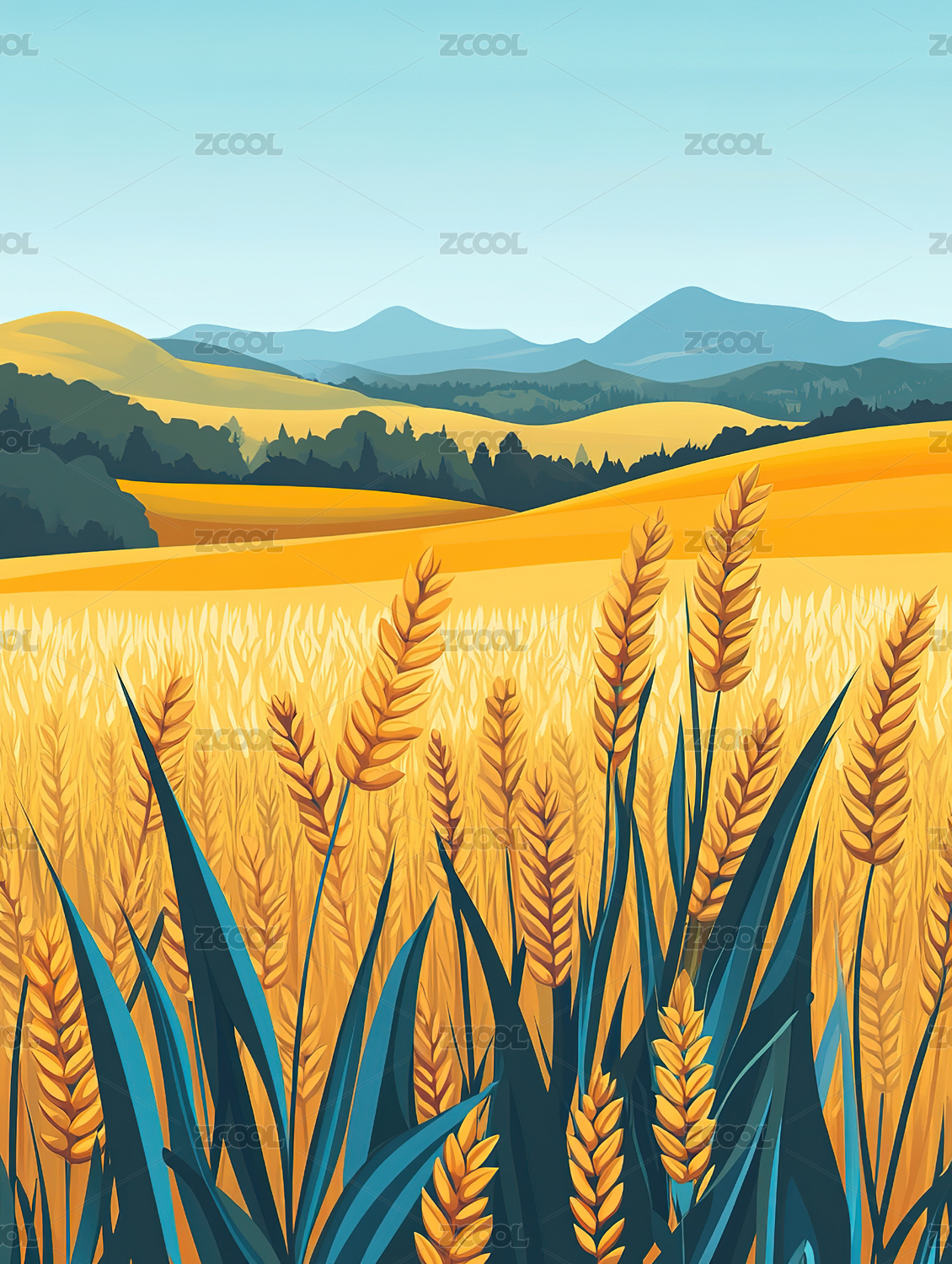 AIGC202402,秋天,金色,黄色,麦穗,麦田,田野,风景,壁纸,自然