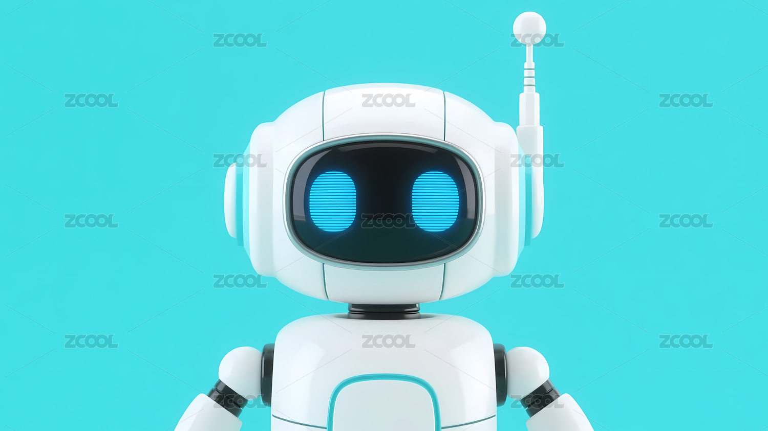 白色机器人在蓝色背景前
