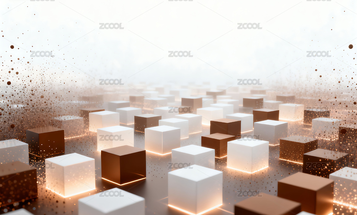 棕色商务科技立方体粒子光效空间主视觉背景