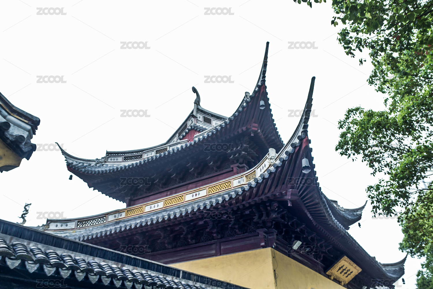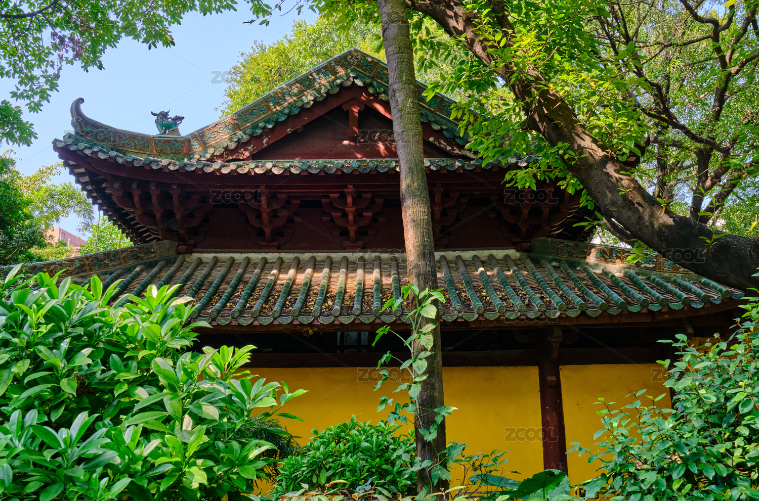 中国浙江省杭州市飞来峰永福禅寺的飞檐斗拱