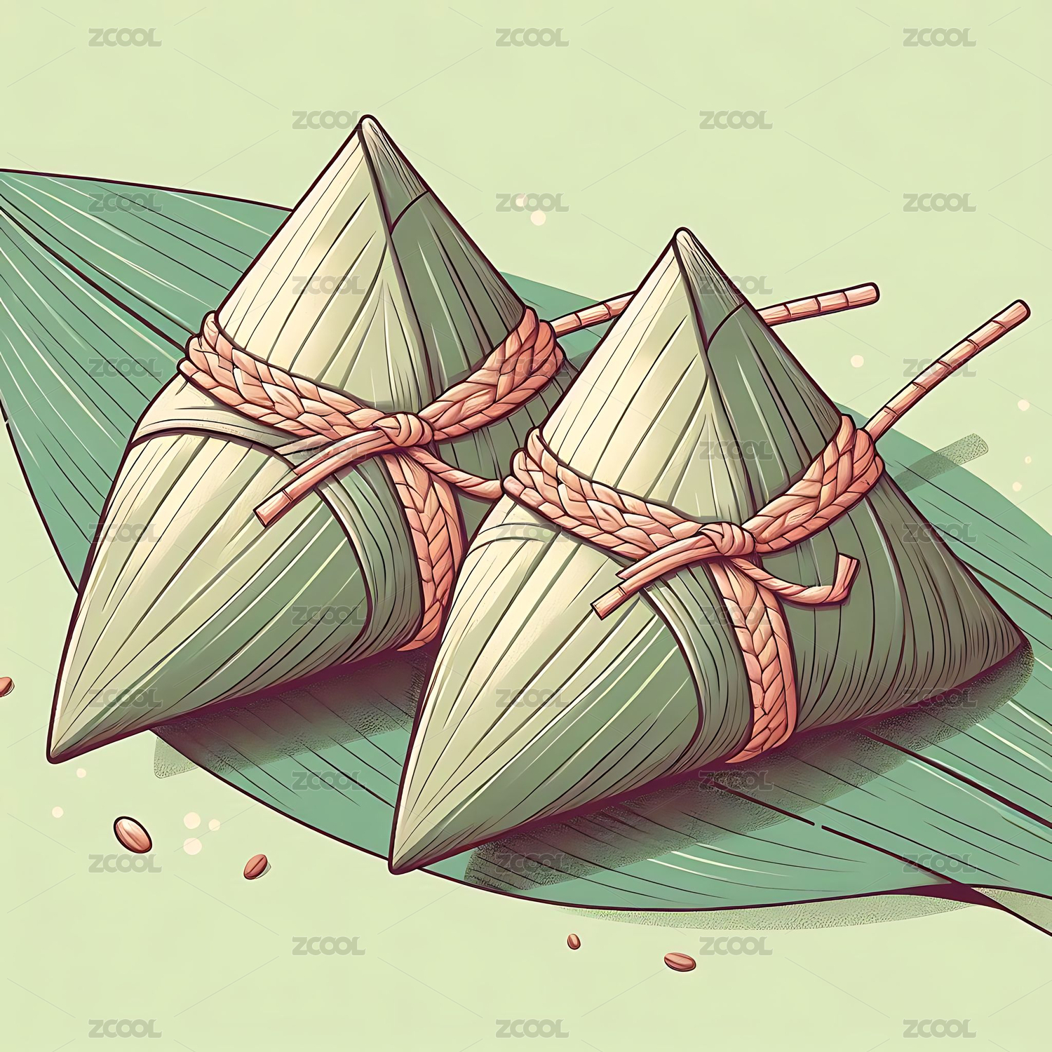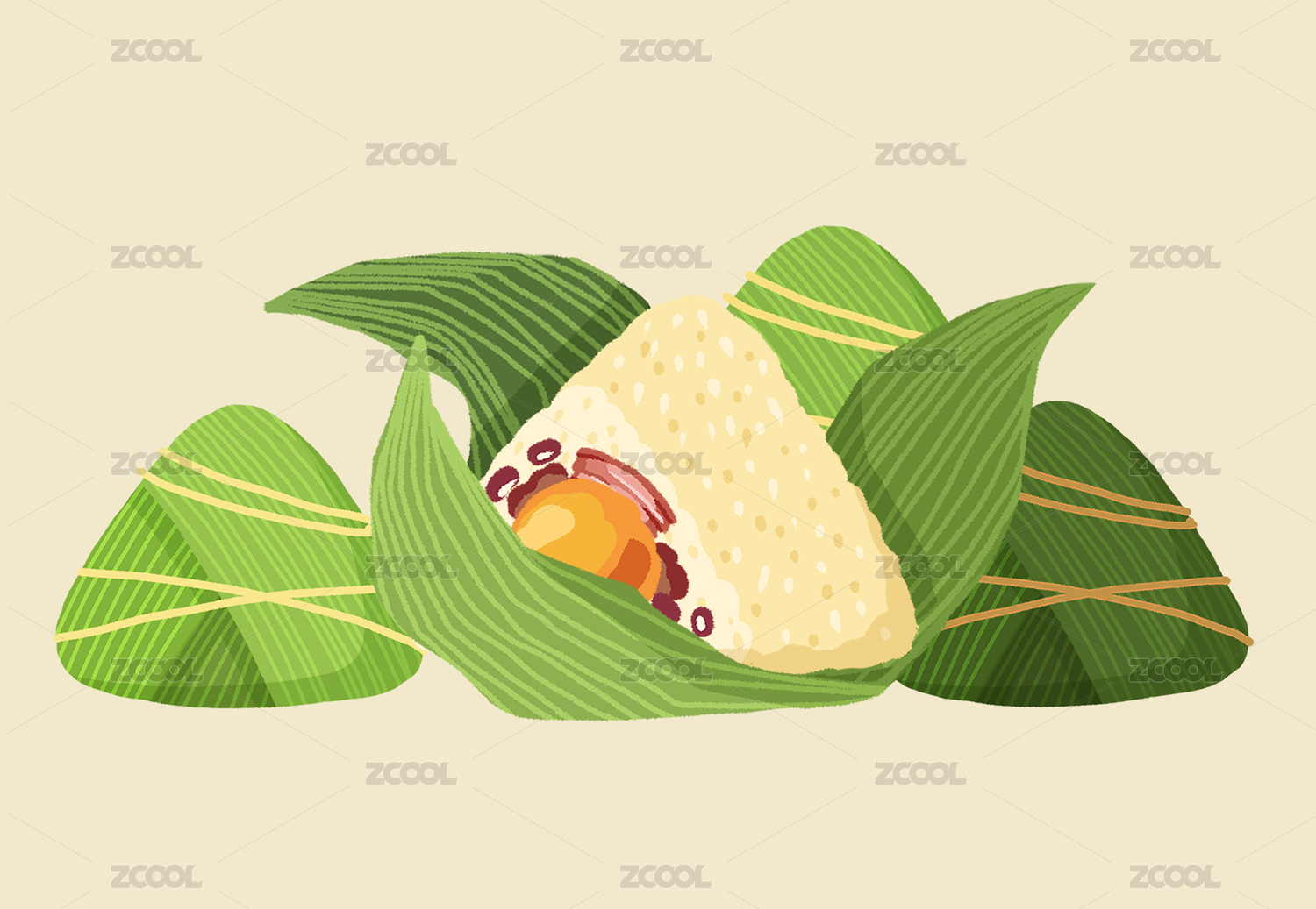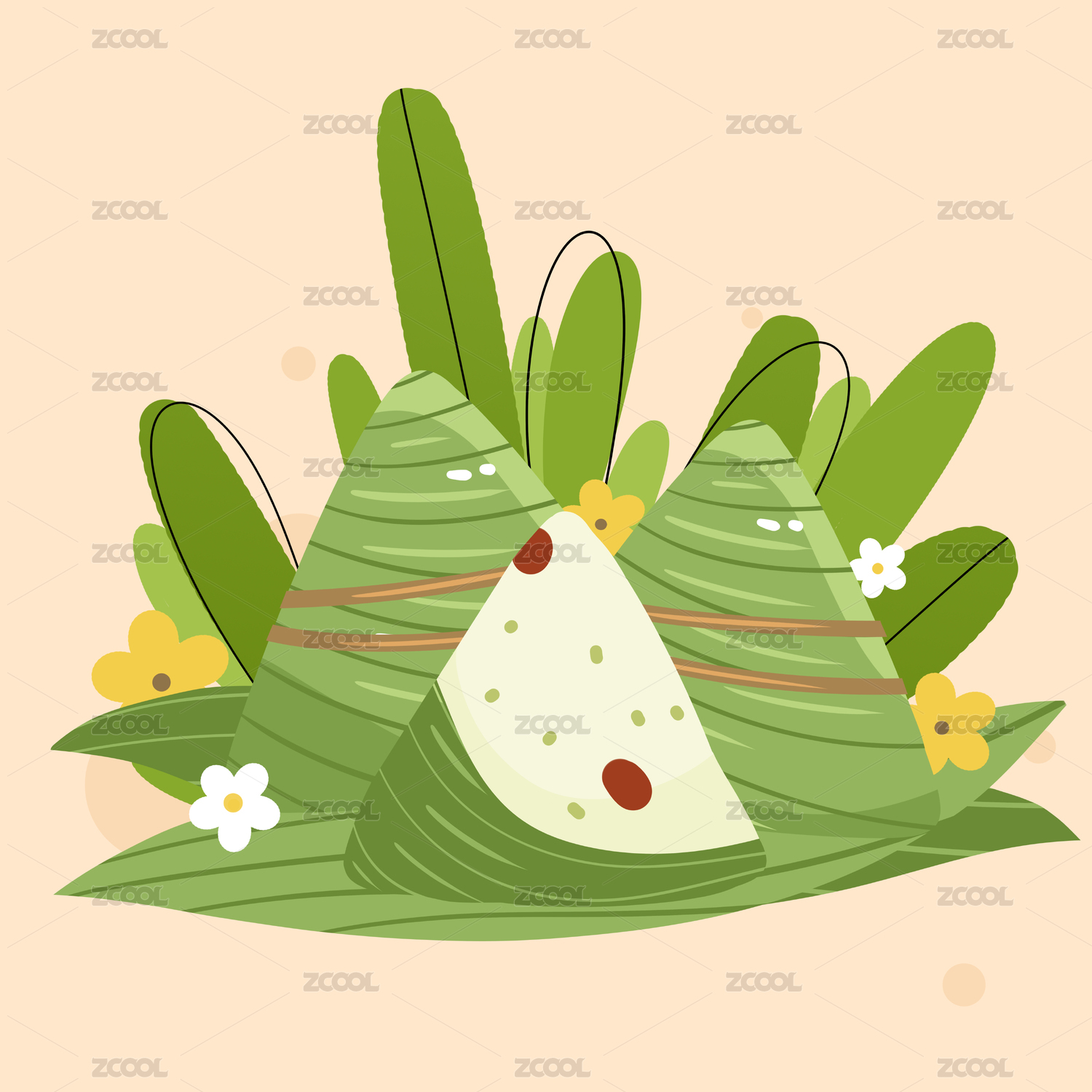 绿色,糯米,甜粽,咸粽,芦苇叶,扁平,插图,配图,端午节,快乐