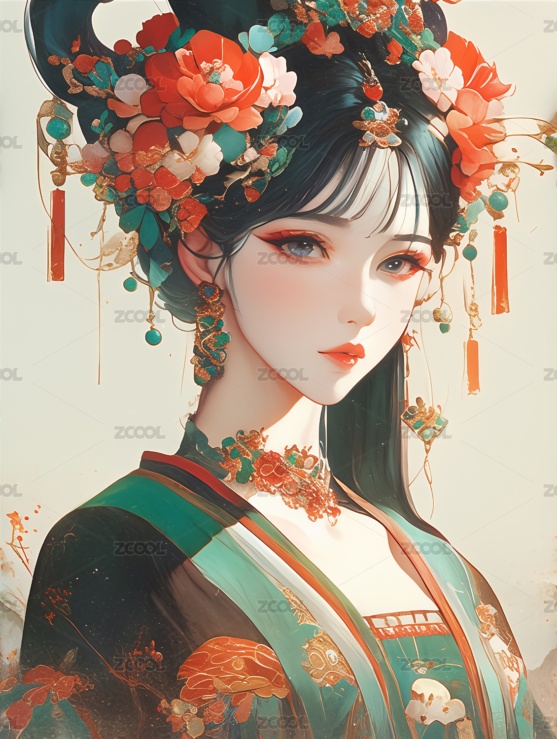 古风,美少女,唯美,传统,古代,古装,国潮,国风,汉服,卡通