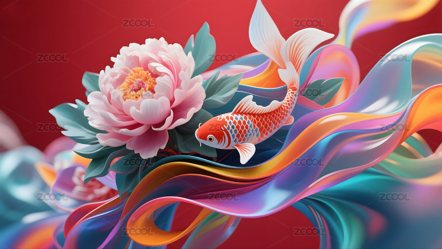 中国风,彩色,鱼,动物,插画,插图,传统,图案,艺术,风格