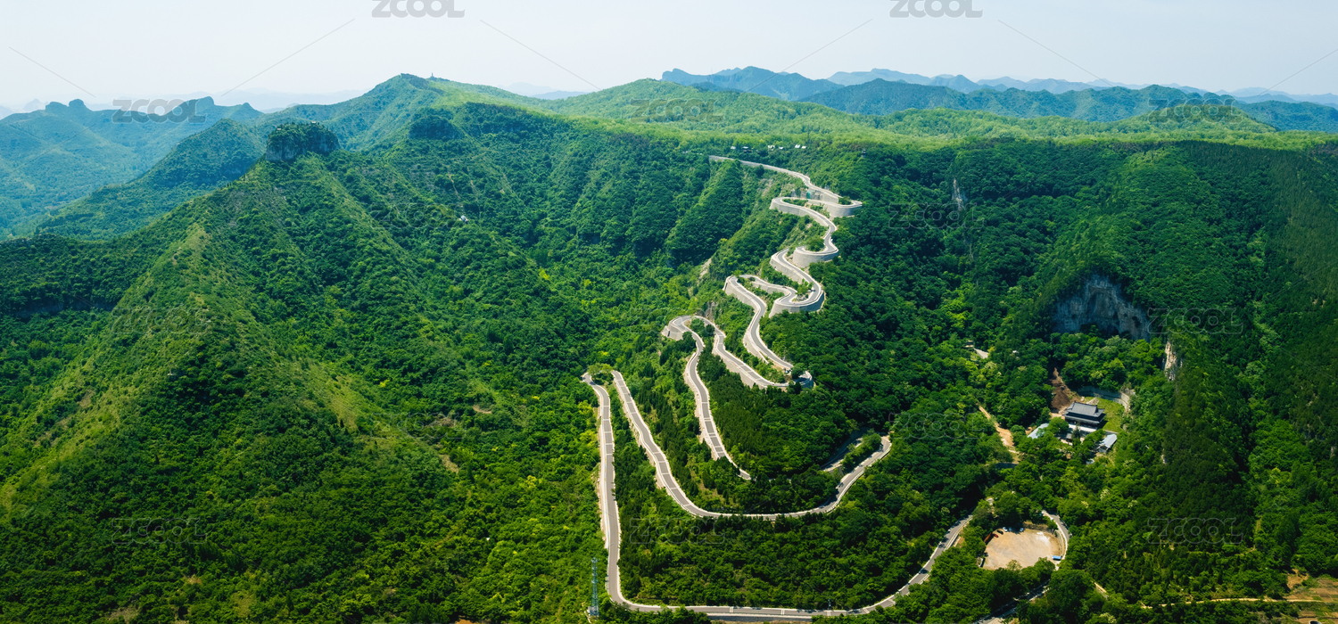 青州仰天山九龙盘蜿蜒山路夏日风景航拍
