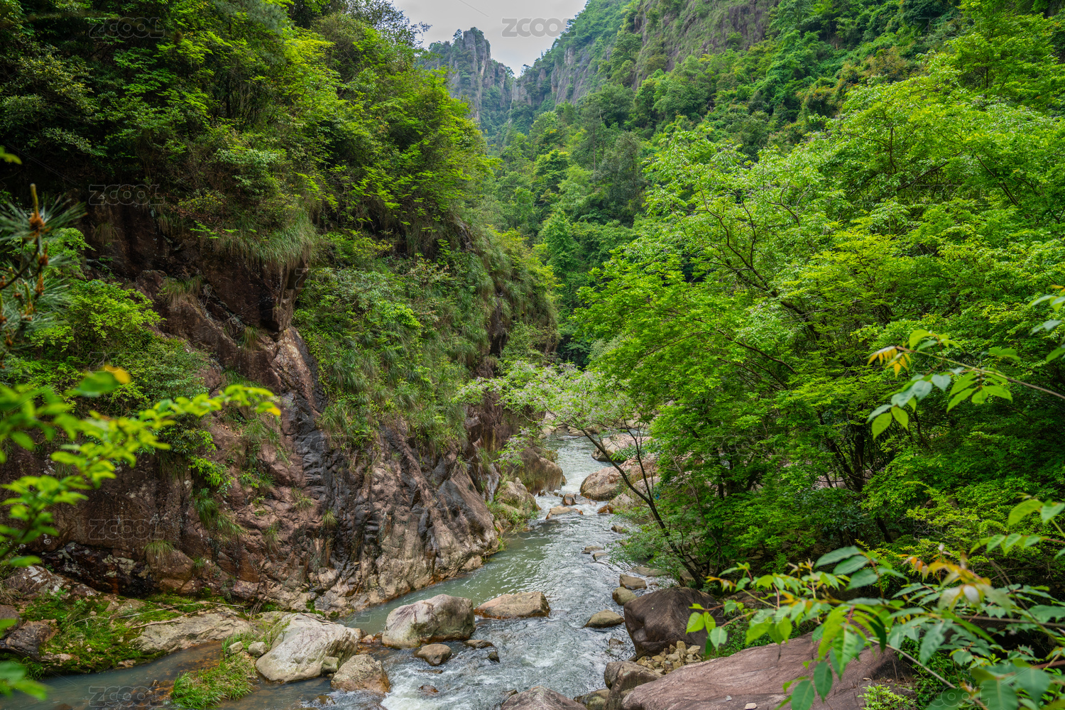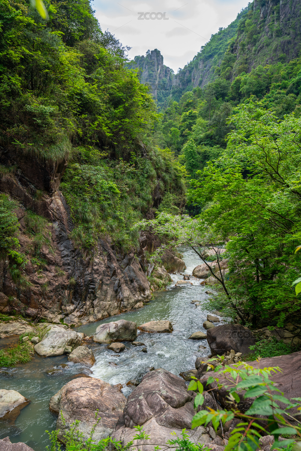 浙江台州5A景区天台山脉琼台仙谷溪水石桥
