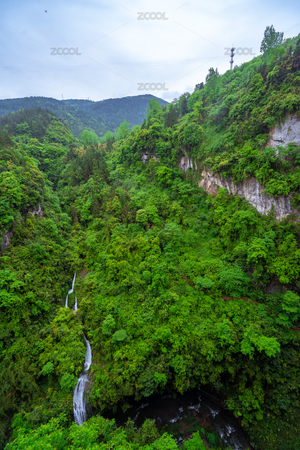 湖北恩施大峡谷绝壁上的碳酸钙石帘