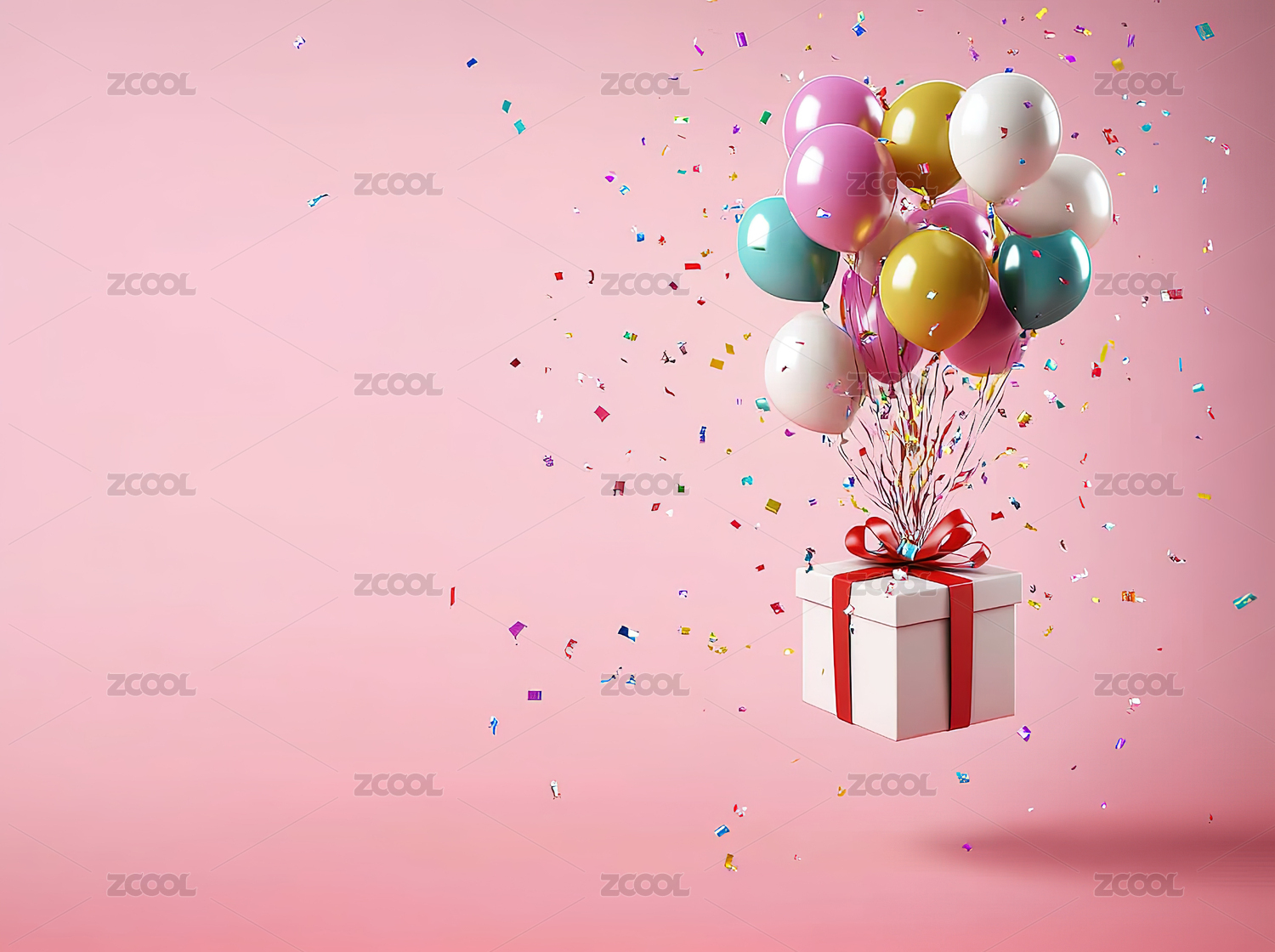 粉色礼盒与飘浮气球的生日庆祝