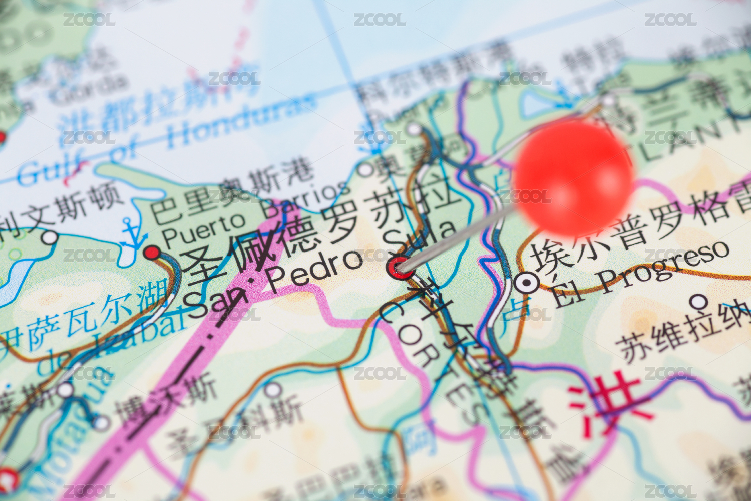 洪都拉斯城市圣佩德罗苏拉在地图上的位置标注