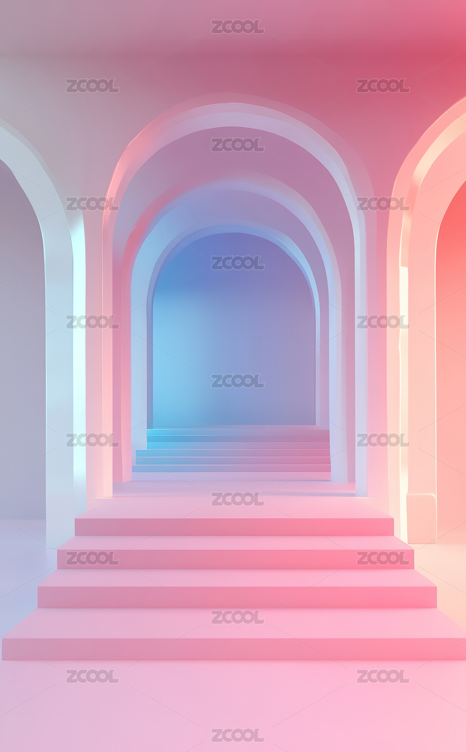 渐变粉色拱形通道与台阶